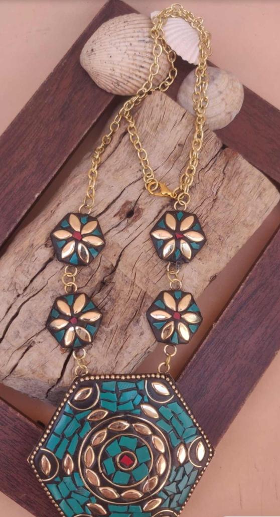 Afgani Boho Style Green Golden Long Chain Necklace for Women in Germany