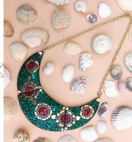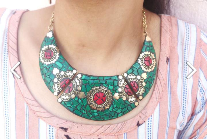 Afghani Boho Stylish Tibetan Green Golden Color Tibetan Partywear Necklace in Germany