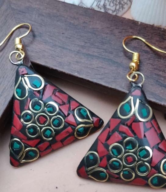 Afghani Laq Tibetan Triangle Shape Light W eight Partywear Earring in Germany