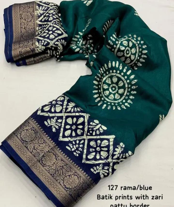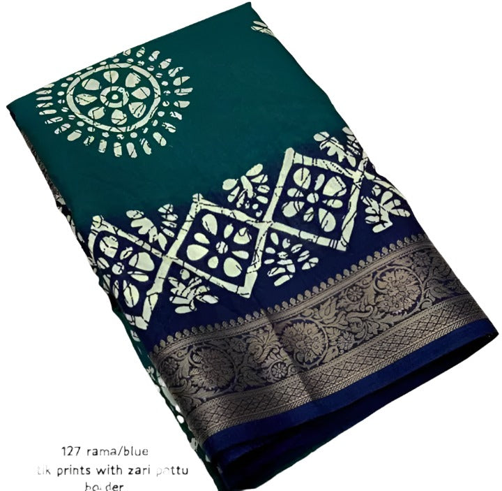 Printed Soft Cotton Crepe Silk Saree Woven Jacquard Border in Berlin