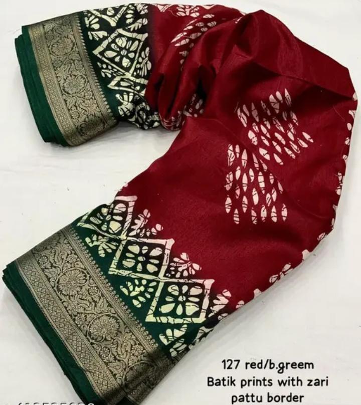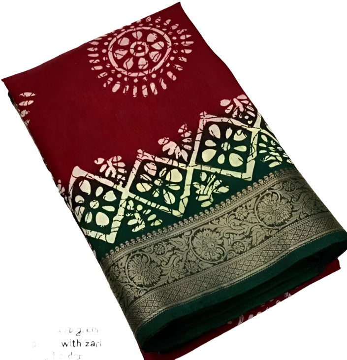 Printed Soft Cotton Crepe Silk Saree With Jacquard Border in Paris
