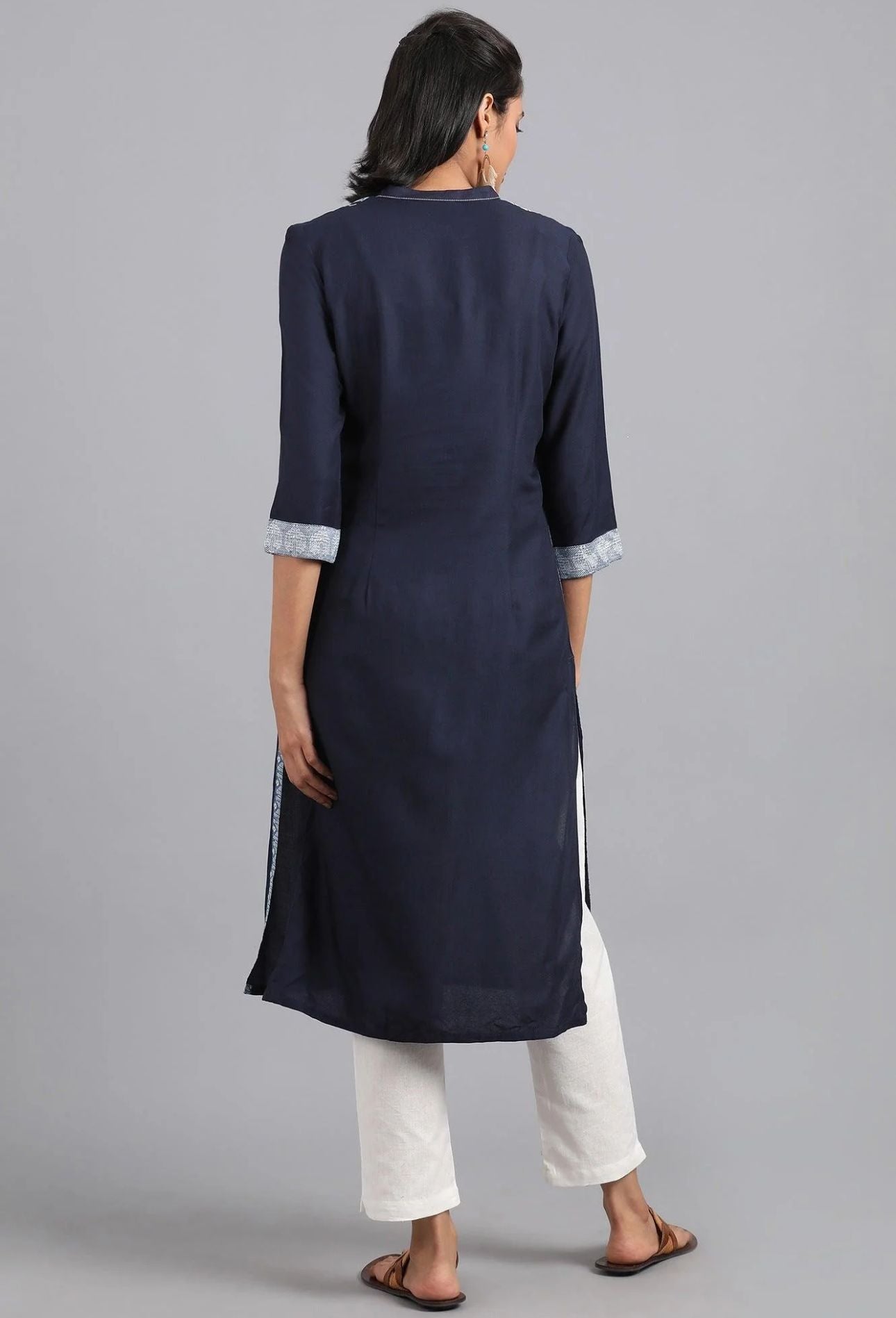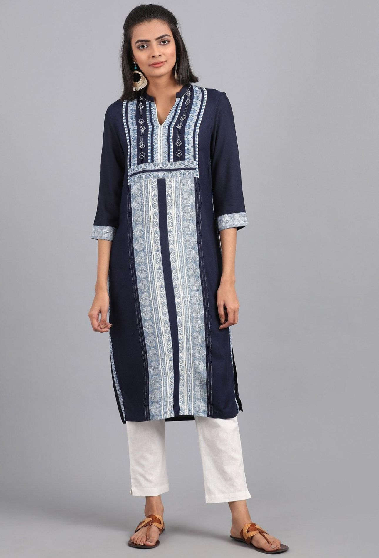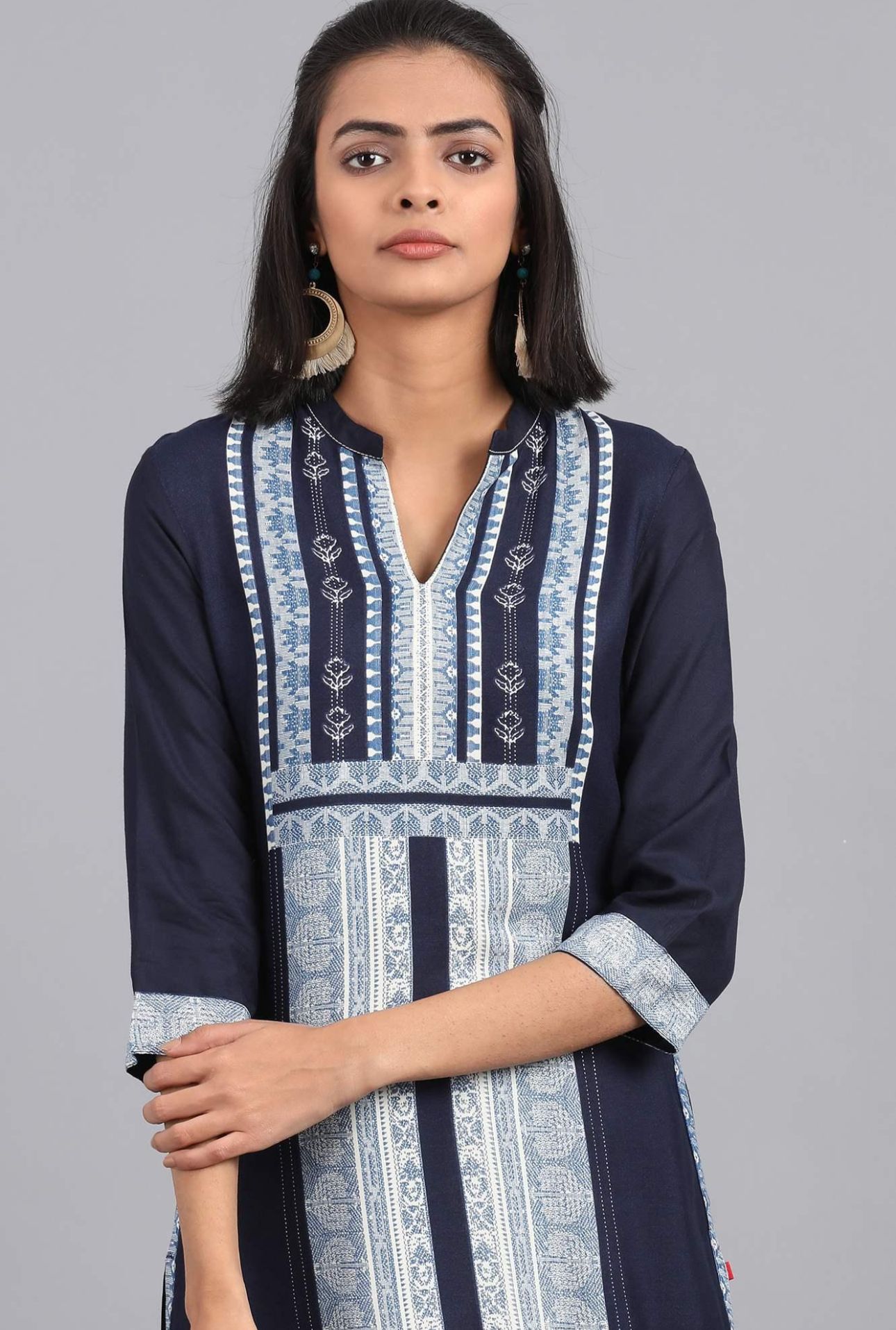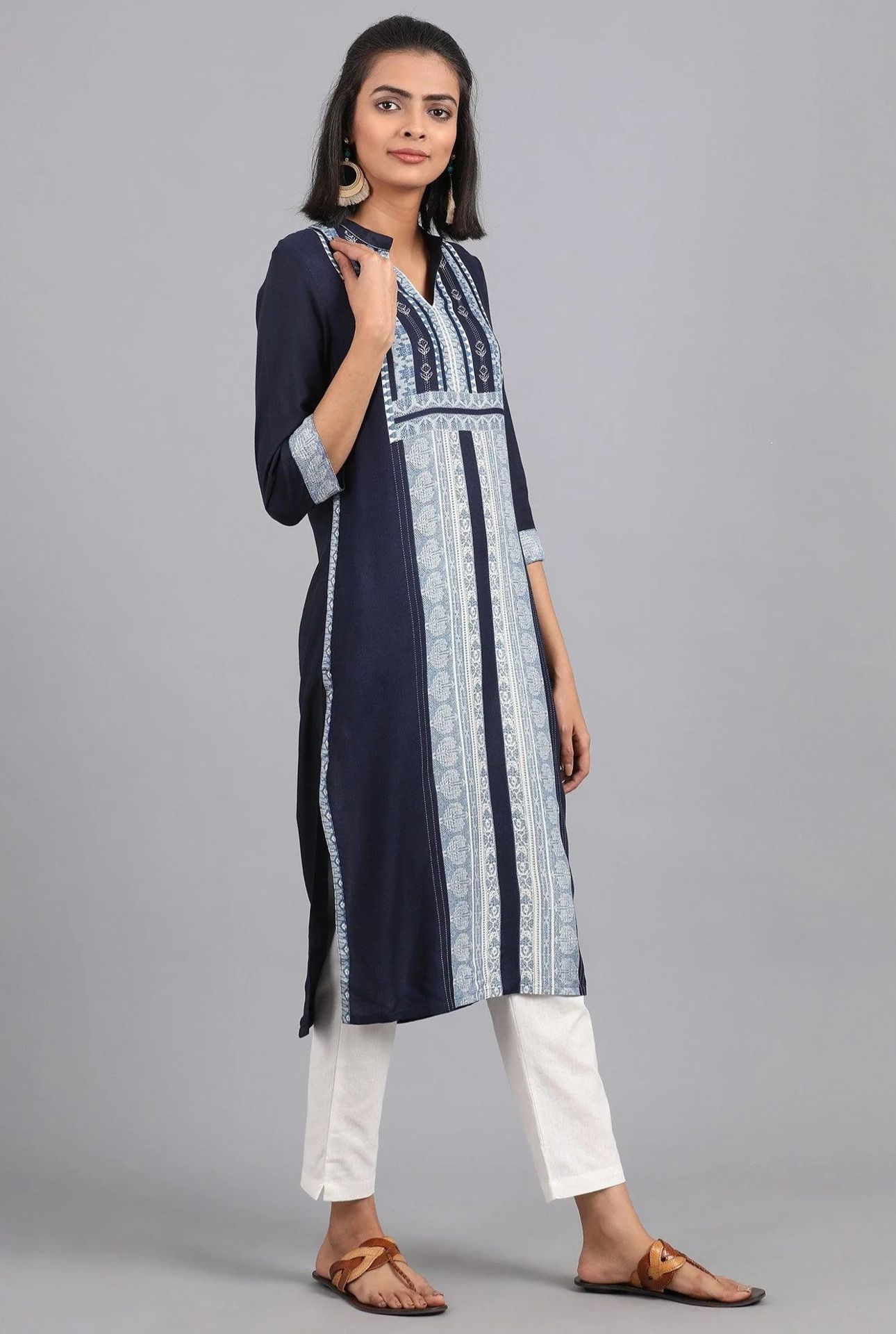 Blue Fusion Booti Geometric Print kurta in Mandarin Neck with Embroidery in Germany