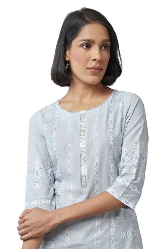 Blue Printed kurta with Sequins in Munich