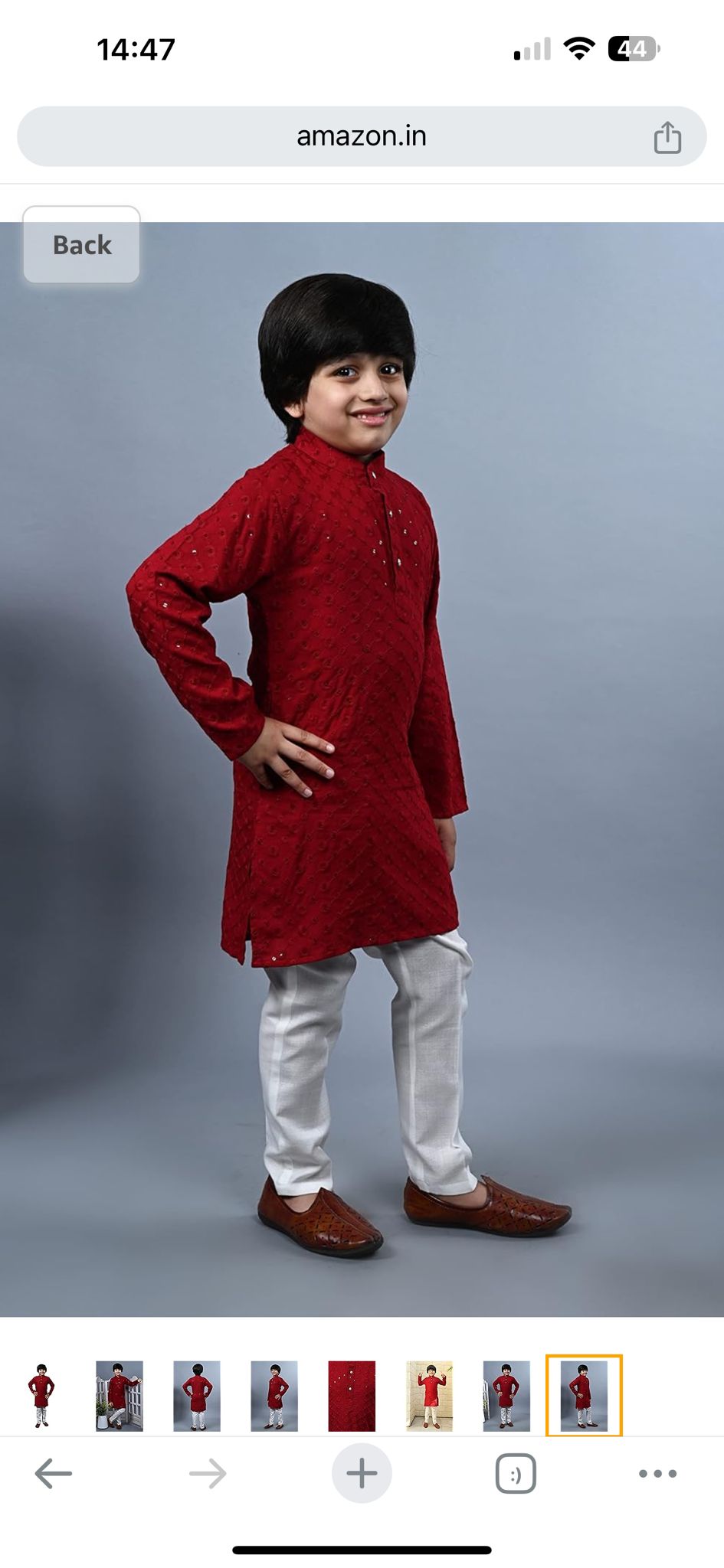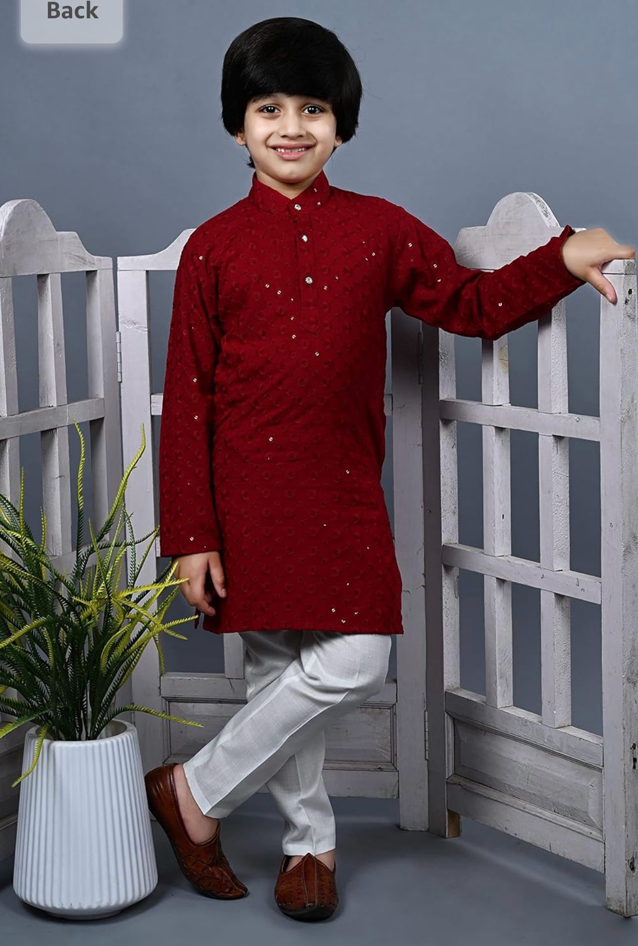 Kurta-Pyjama für Jungen, Pailletten-Druck, Stickerei, Spiegelarbeit, Rot