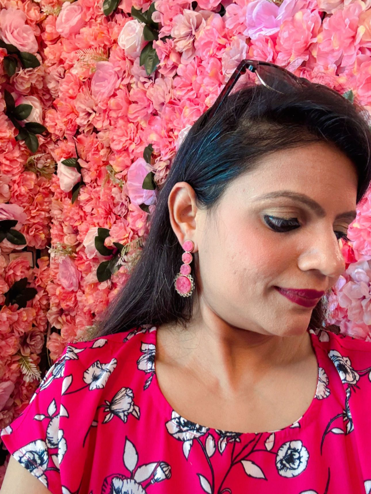 Contemporary Brass Handmade Elegant Pink Druzy Stone Dangle Earrings