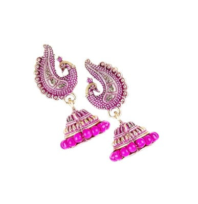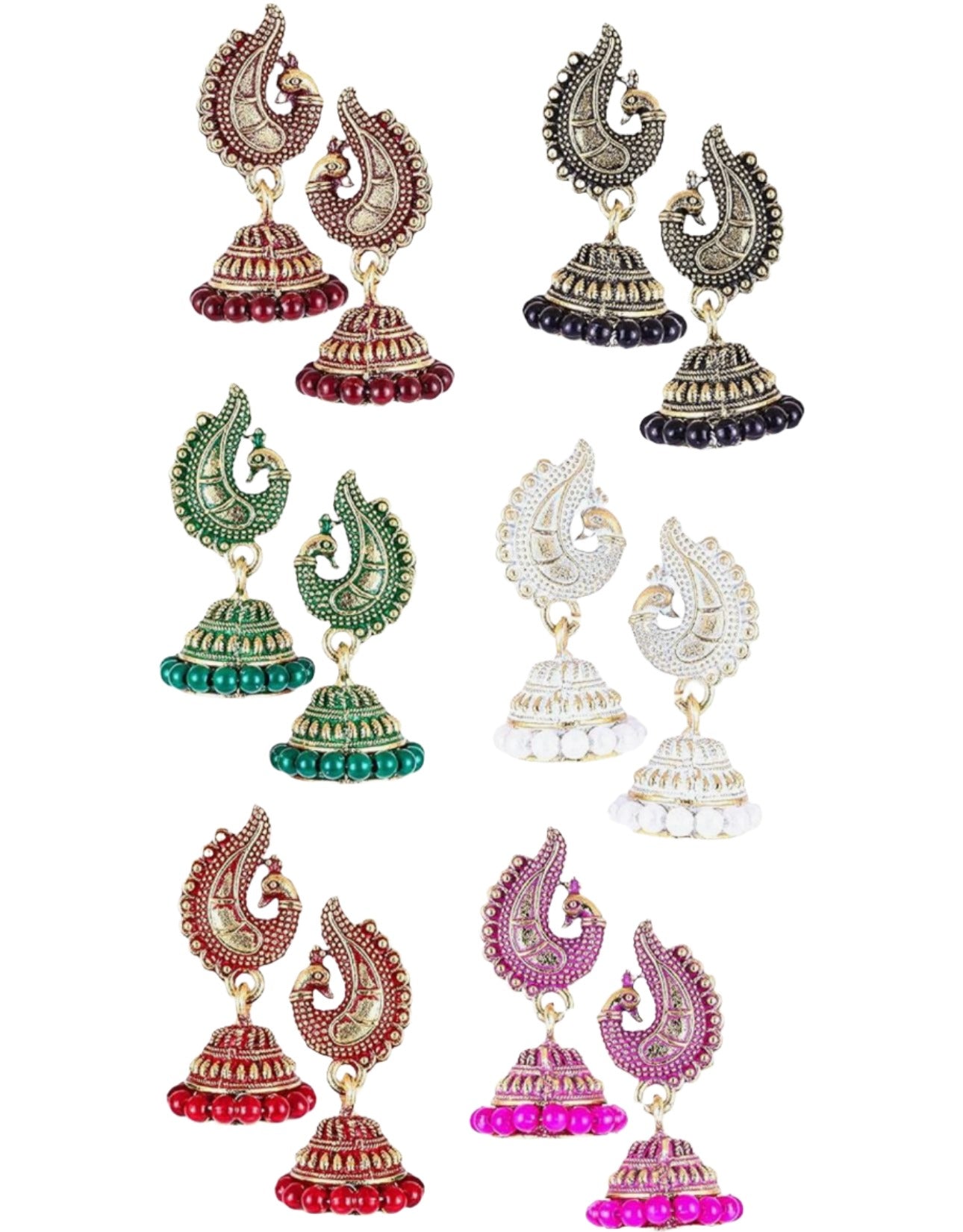 Pfau Jhumkas Jhumka Jhumki Ohrringe Kombi-Set Ohrringe für Frauen Mädchen Damen Traditionelle Hochzeit Tempel Gold Meenakari Ethno Antik Südindisch Runde Perle Moti Feder Jhumki