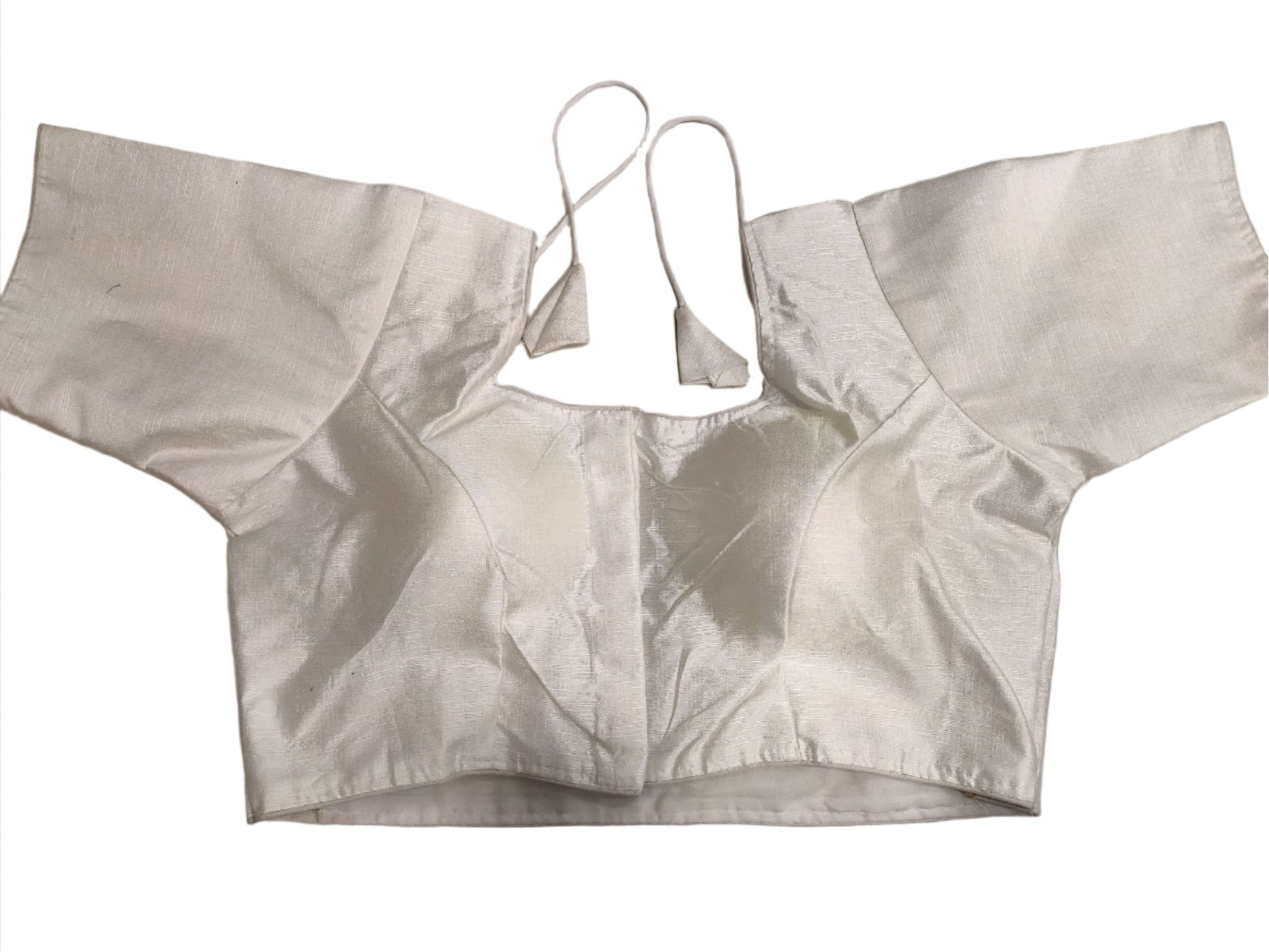 Weiße, fertige Saree-Bluse aus massiver Mulbury-Seide für Damen