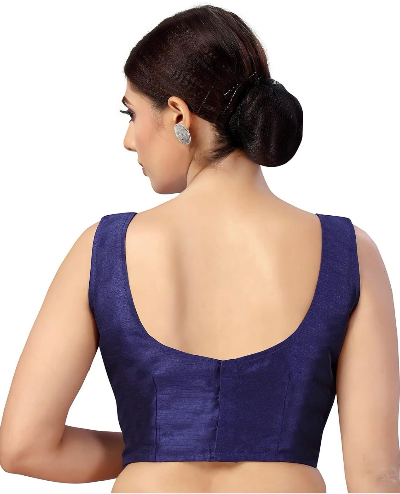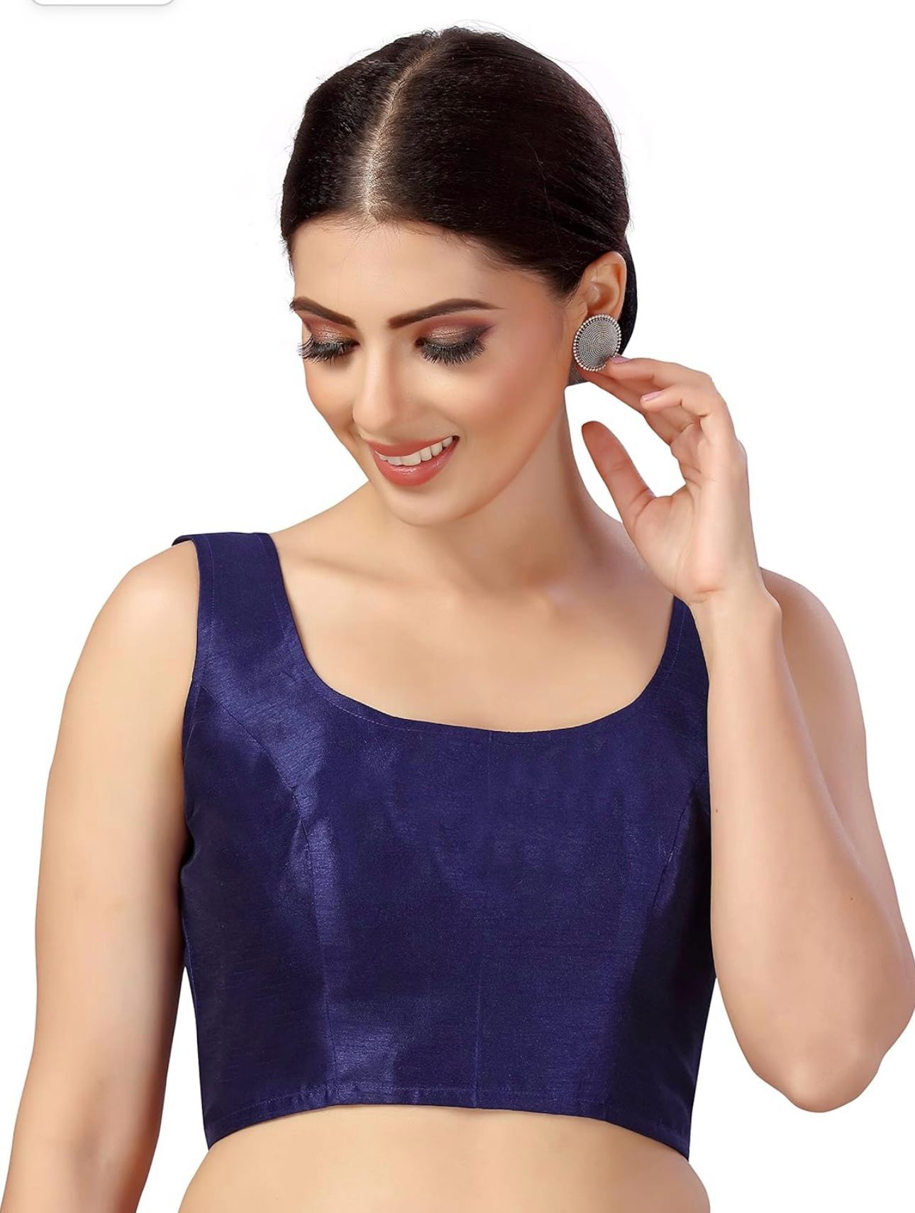 Ärmellose Saree-Bluse aus Kunstseide für Damen (Navy-Bluse)