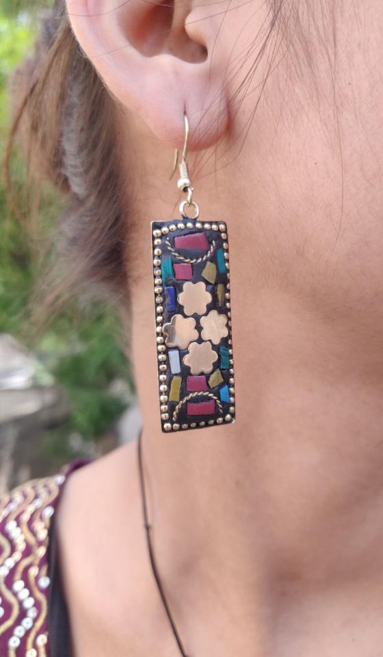 Designer laq work Rectangle Shape lightweight earring in Germany