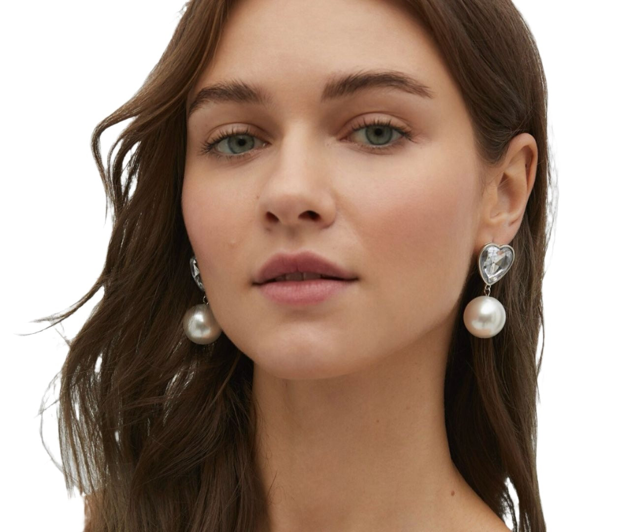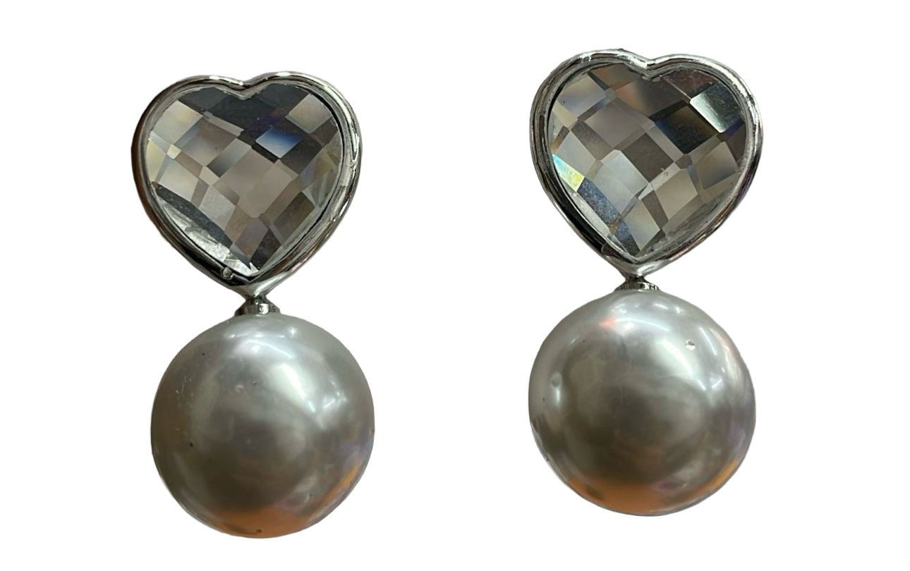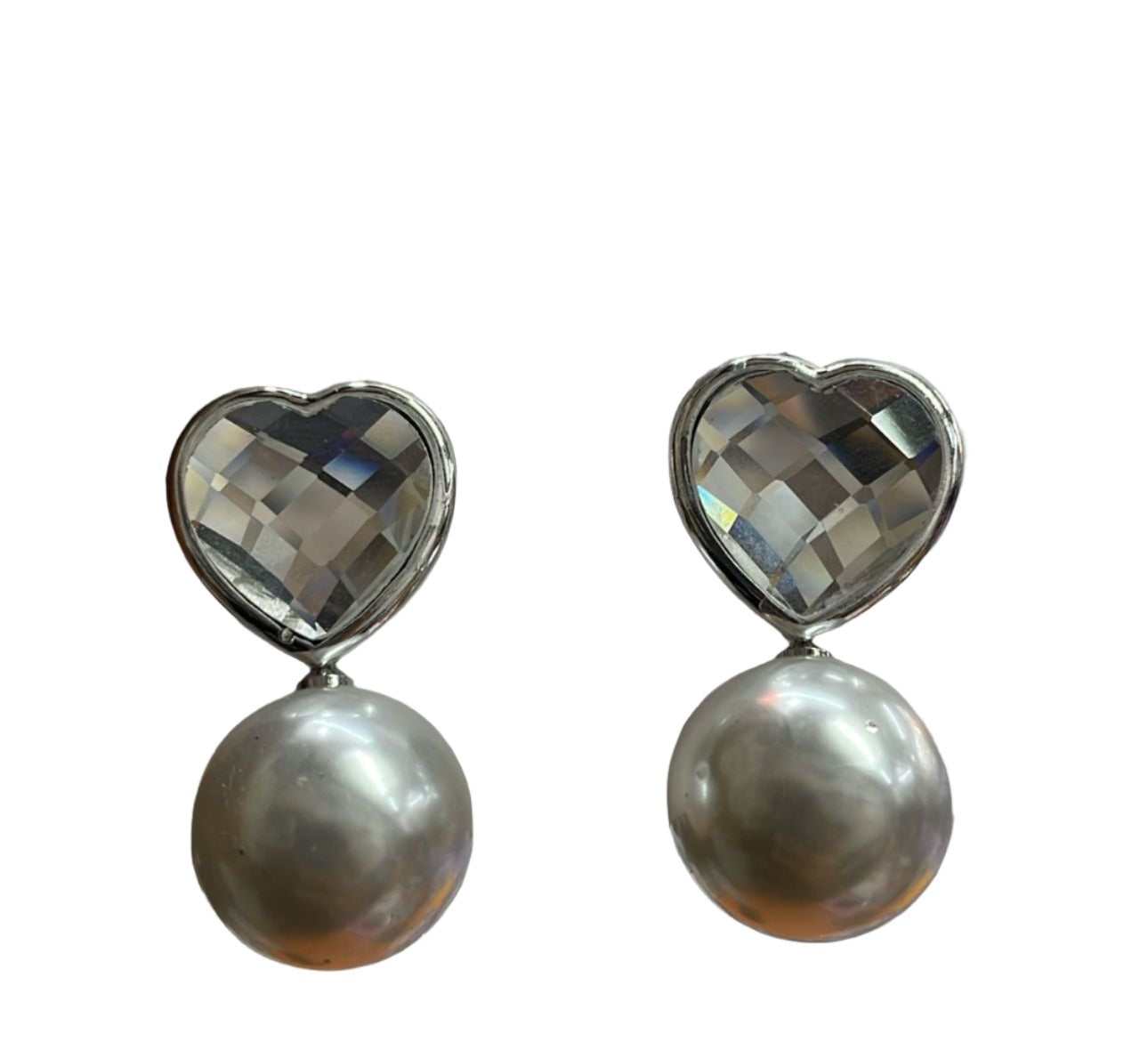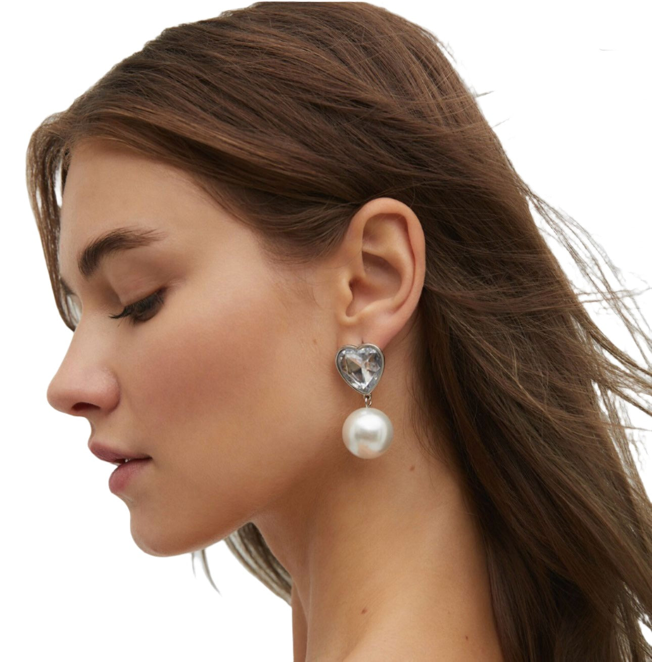 Ohrringe mit Edelstein, Herz und Kunstperle
