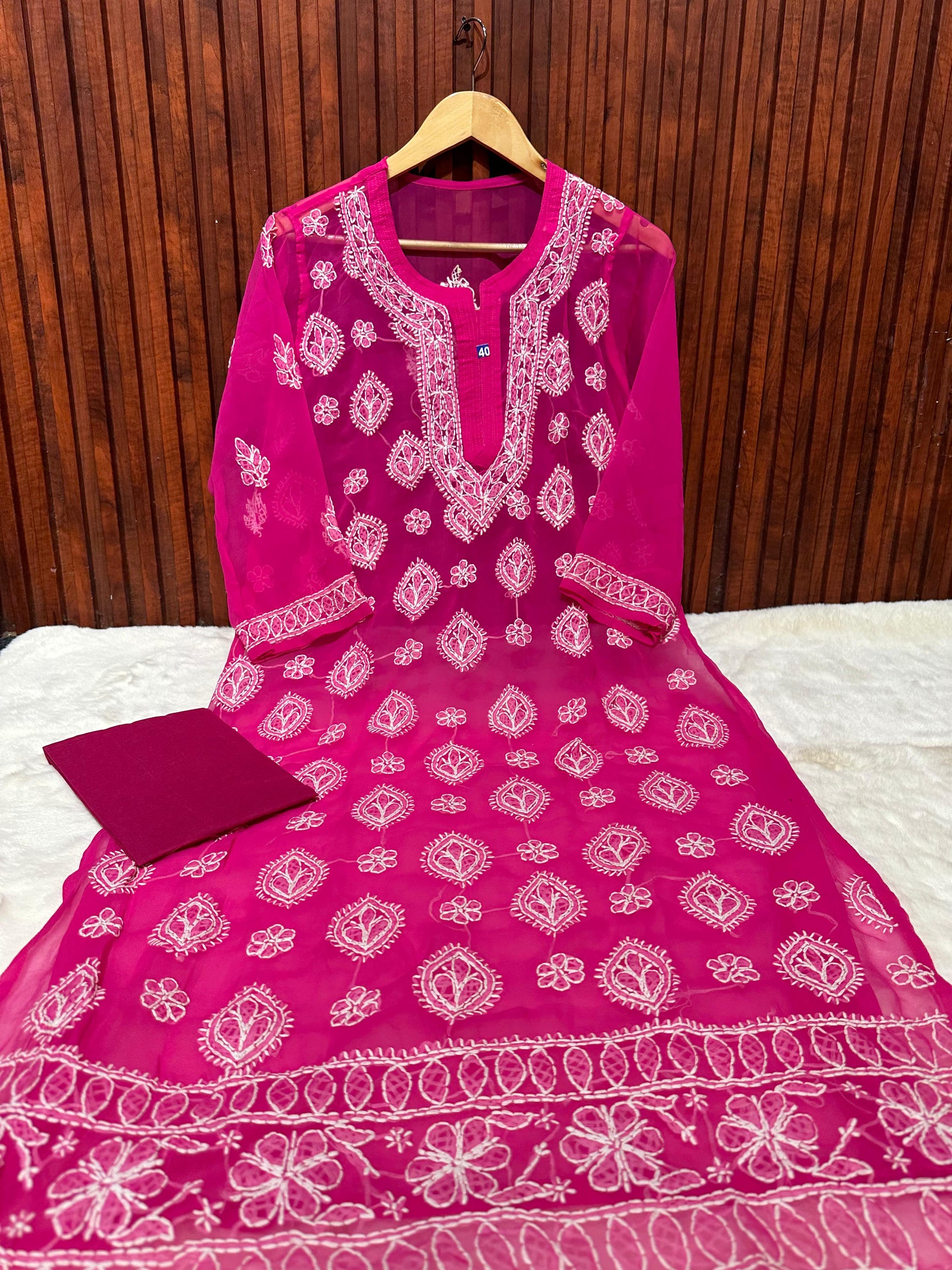 Ethnic Women's Georgette Chikankari Embroidery Straight Kurta