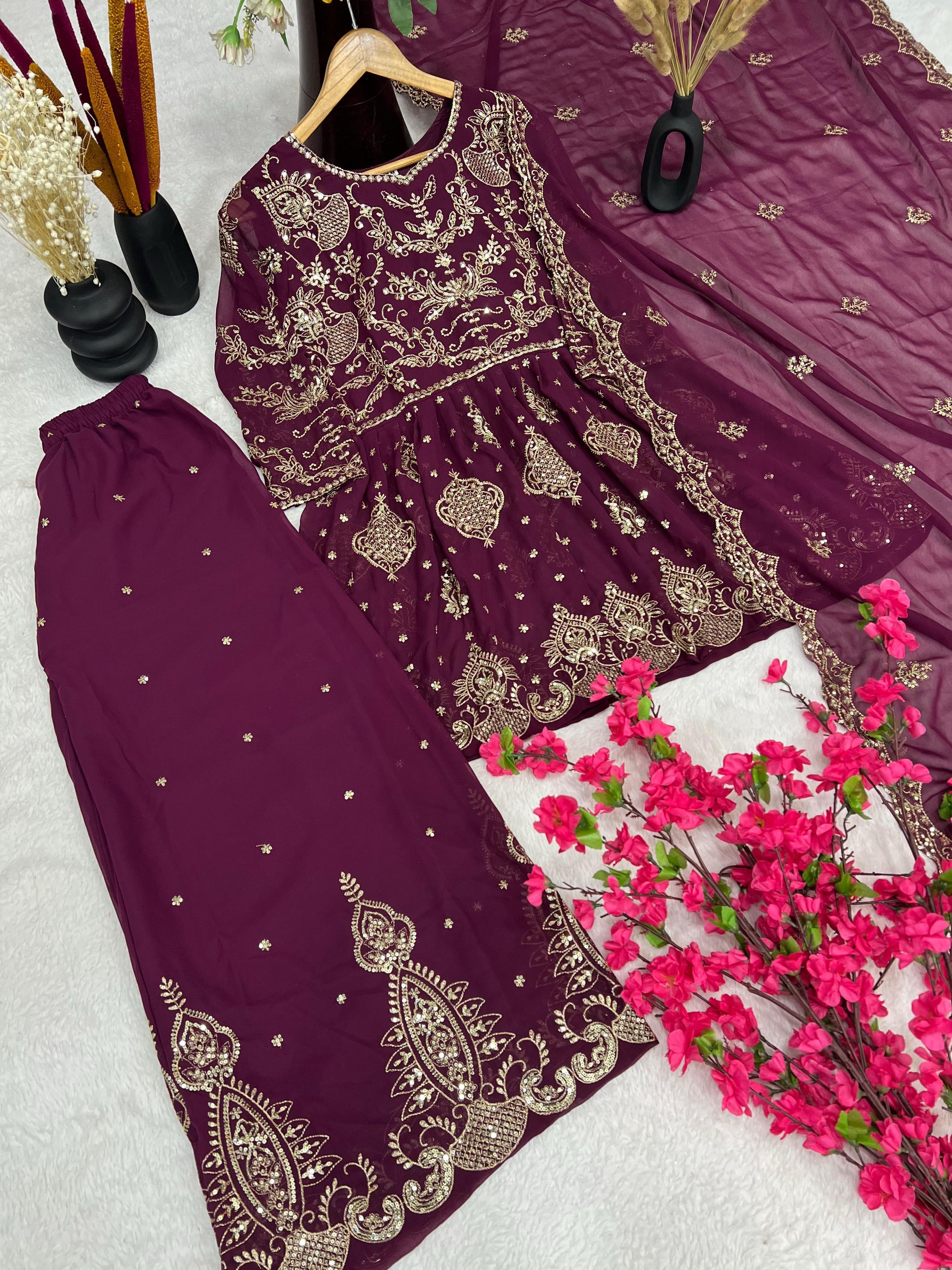 FANCY GEORGETTE EMBROIDERY WORK PLAZO SUIT IN MUNICH