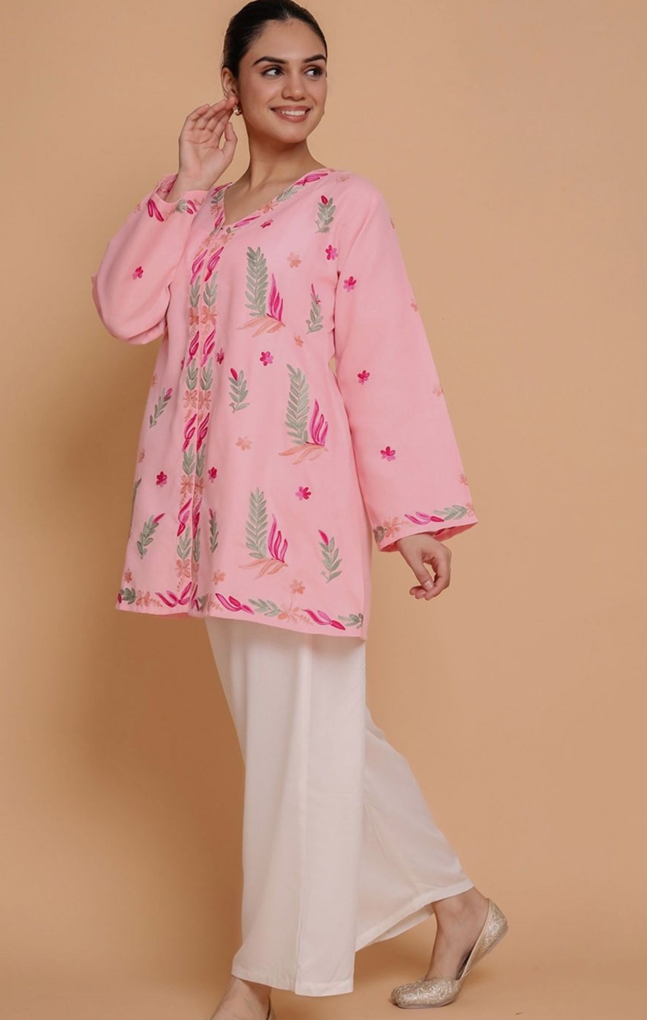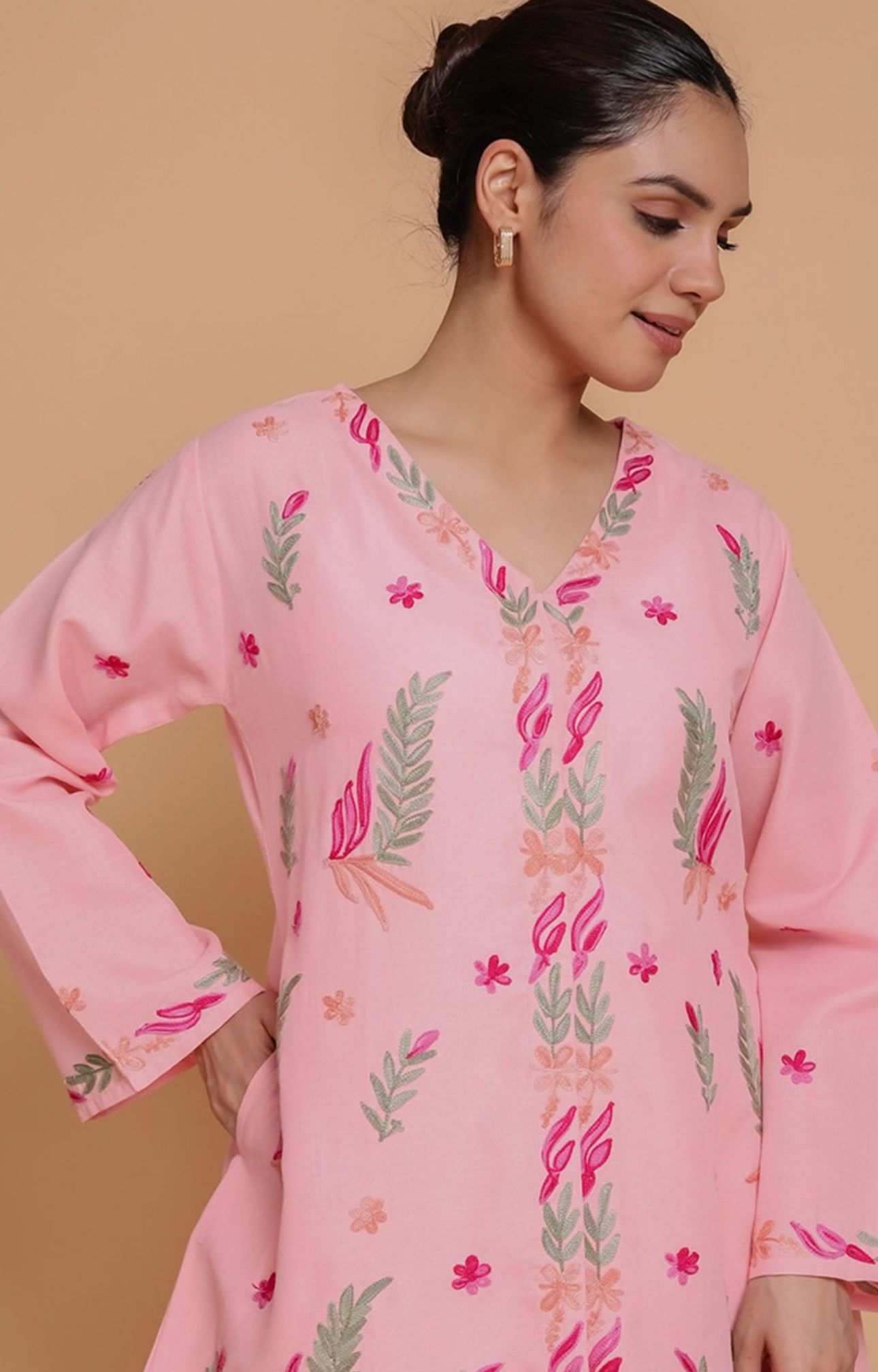 Floral Embroidered Pastels Cotton A-line Kurta in Germany