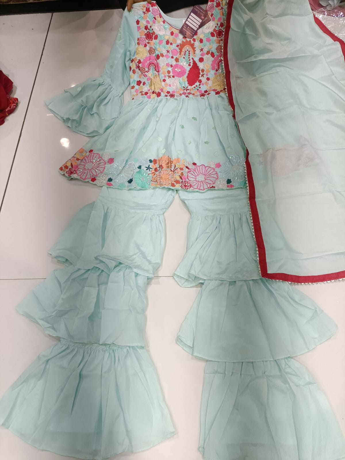 Georgette Girls Chinun Double Frill Sharara Suit in Germany