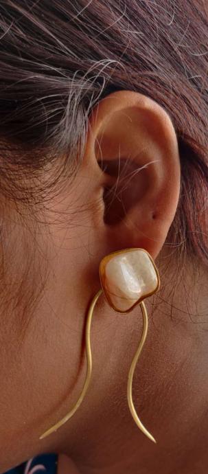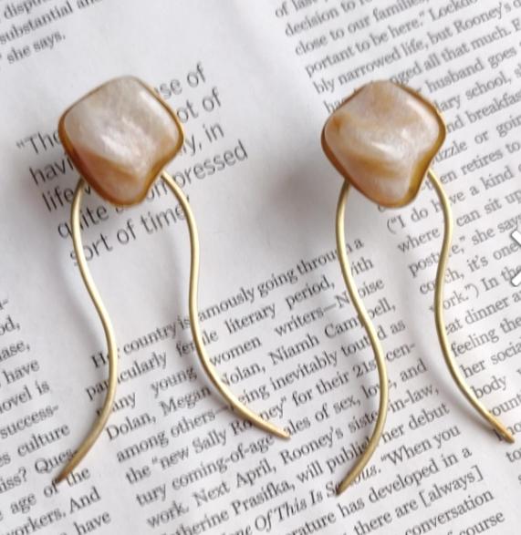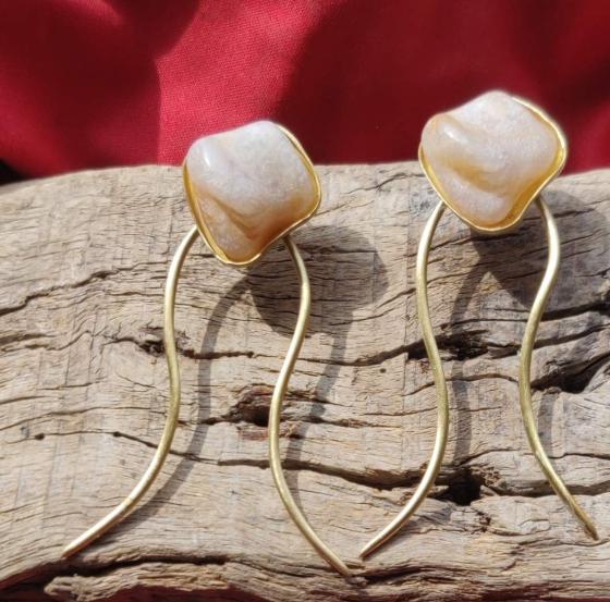 Golden Hanging Sophisticated Resin Stone Drop Brass Earrings in Germany