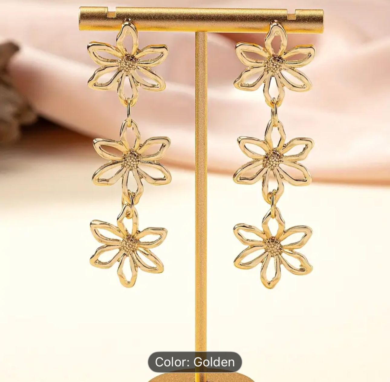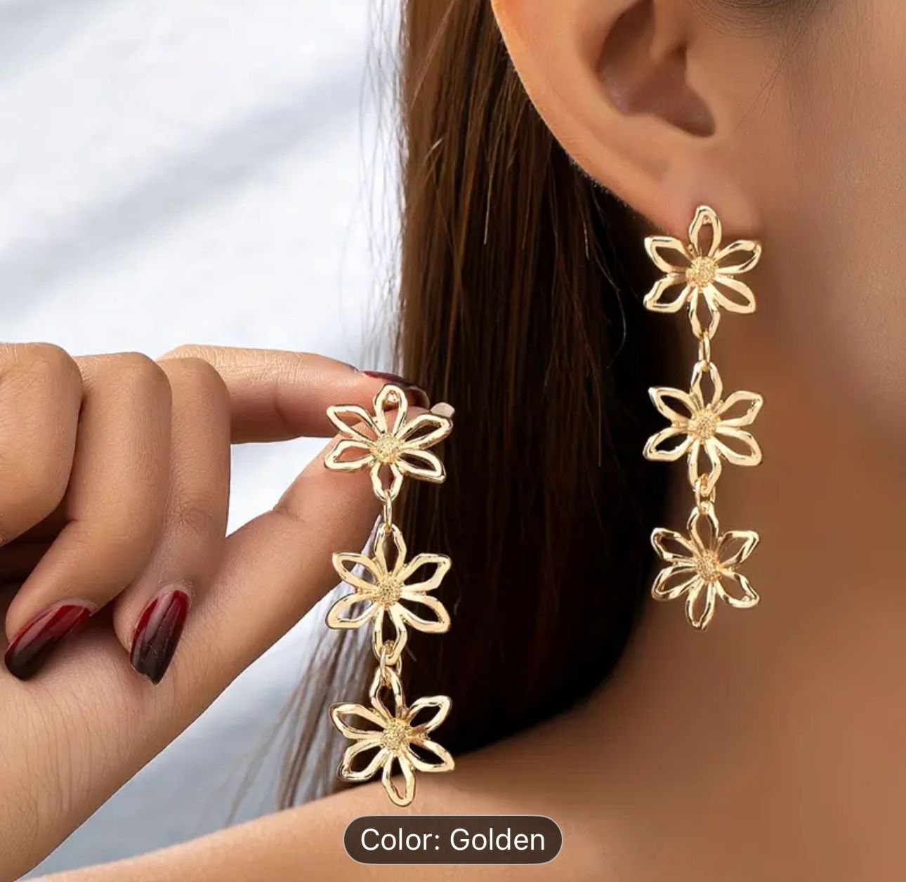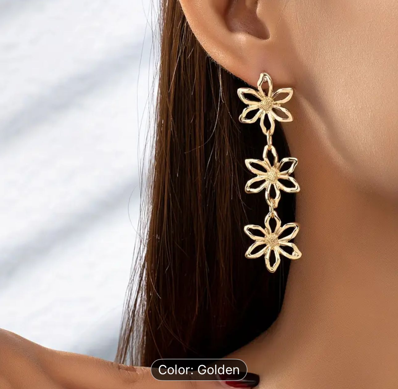 Golden Hollow Flower Design Long Dangle Earrings in Berlin