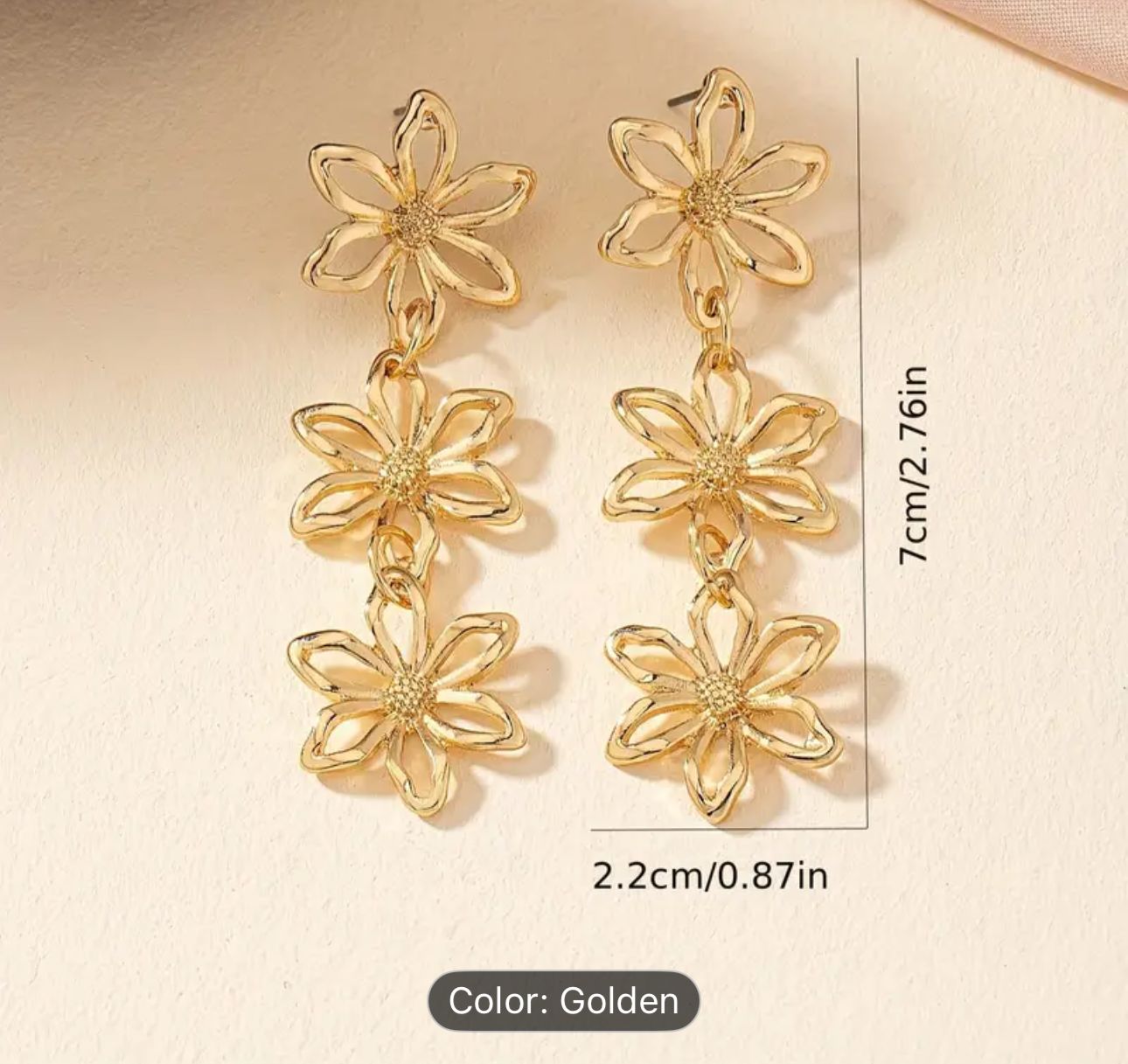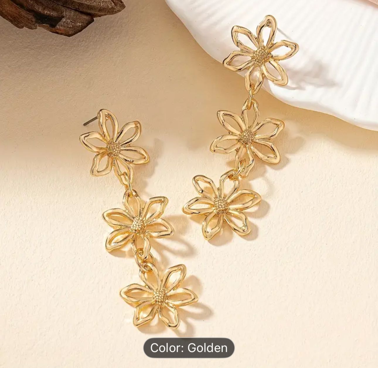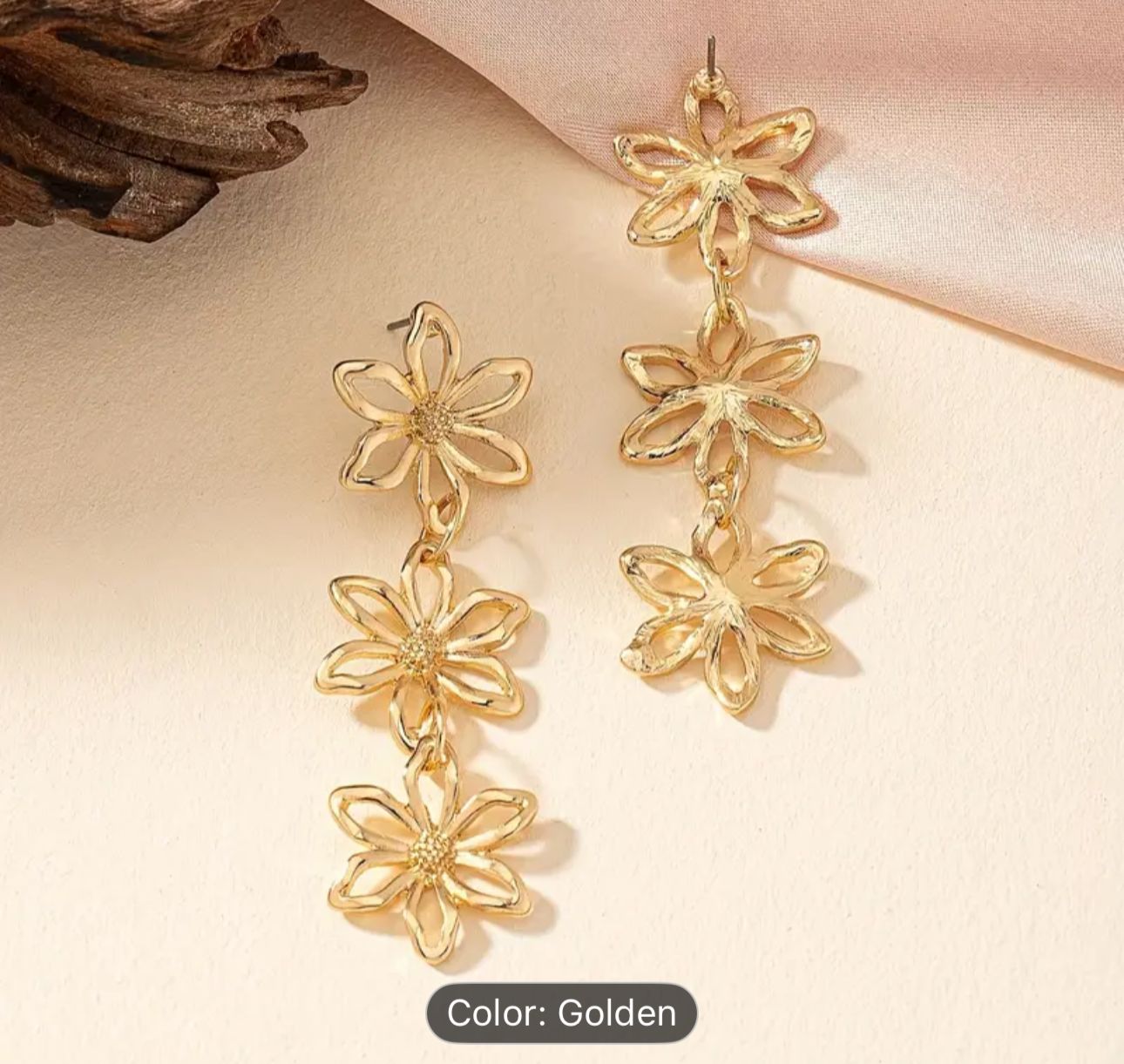 Golden Hollow Flower Design Long Dangle Earrings in Berlin