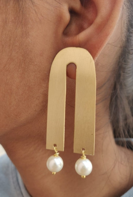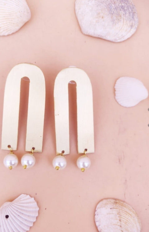 Golden Pearl Brass Gold Plated Earring in Berlin