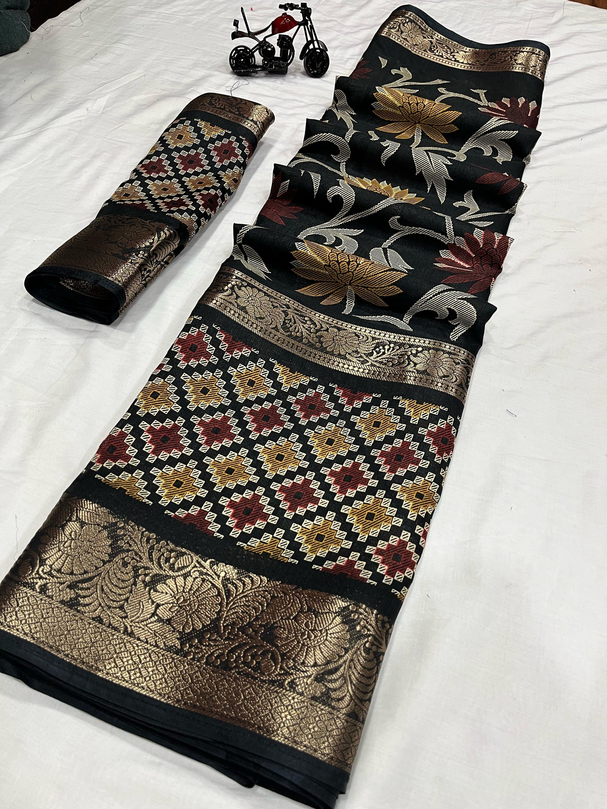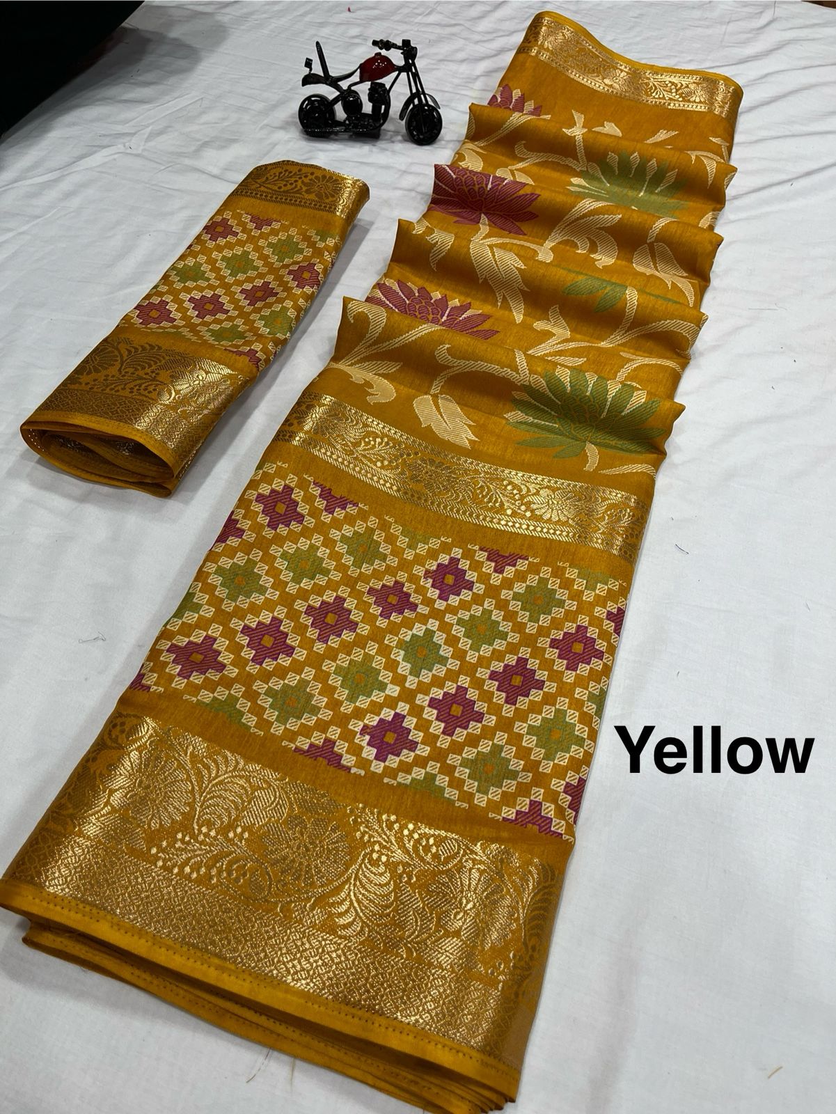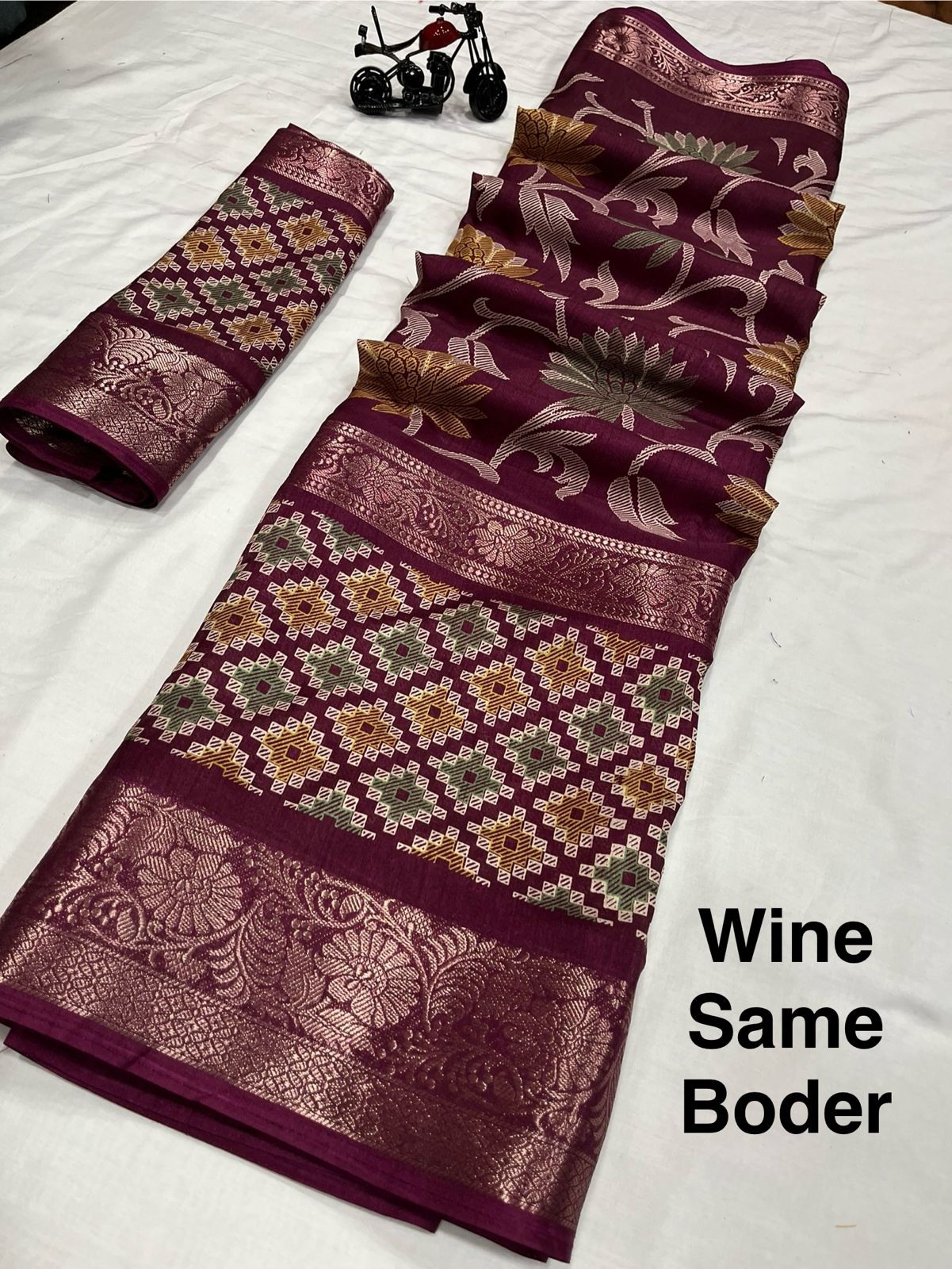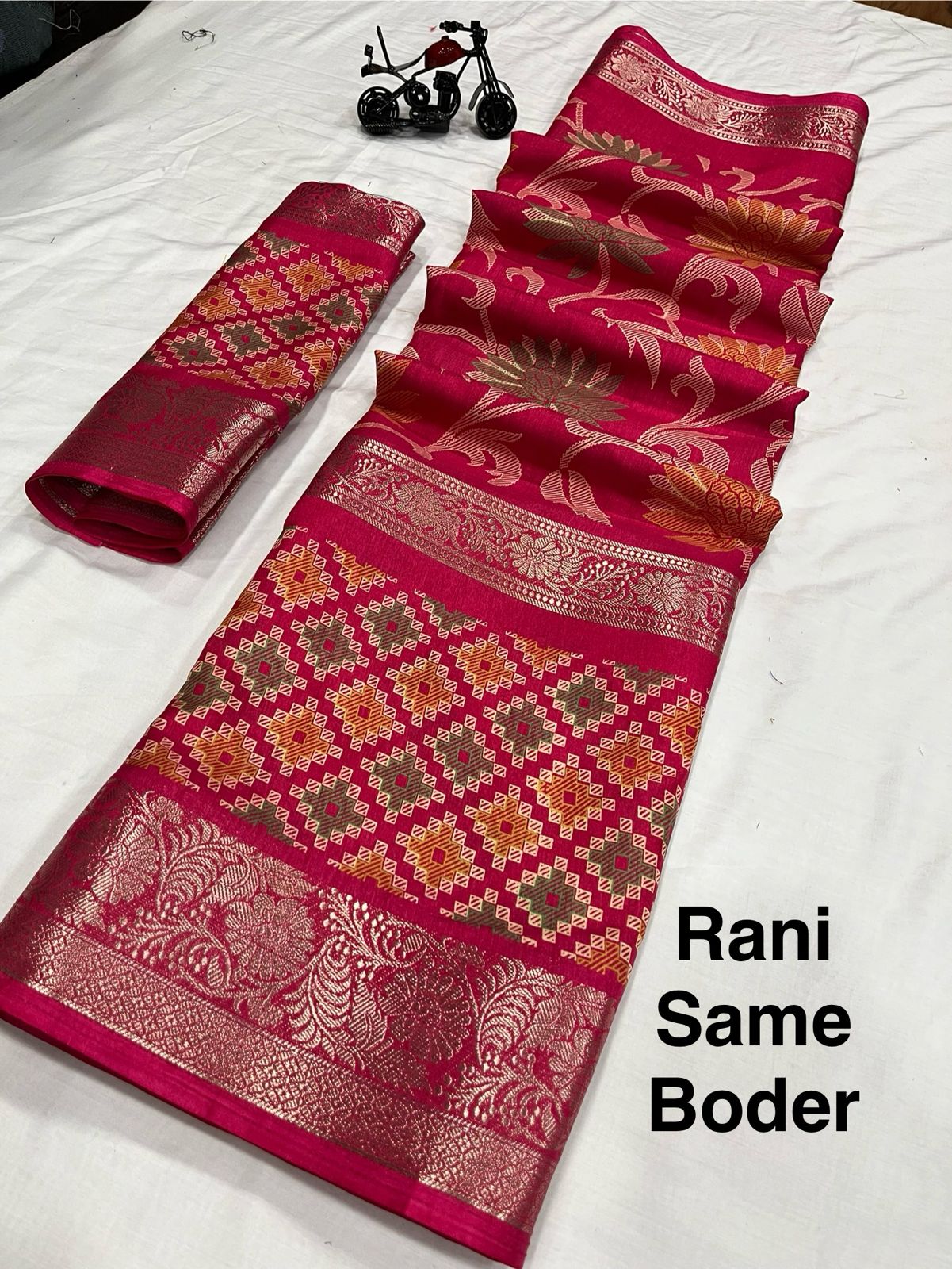 Name : New Trendy Sarees , dola silk saree , dola silk fabric saree , printed saree , saree with blouse , heavy border saree , zari border saree , dola silk saree new collection , printed sadiyan , floral print sarees , flower sarees , saree for women wedding , banaras sadi , banarasi saree design.