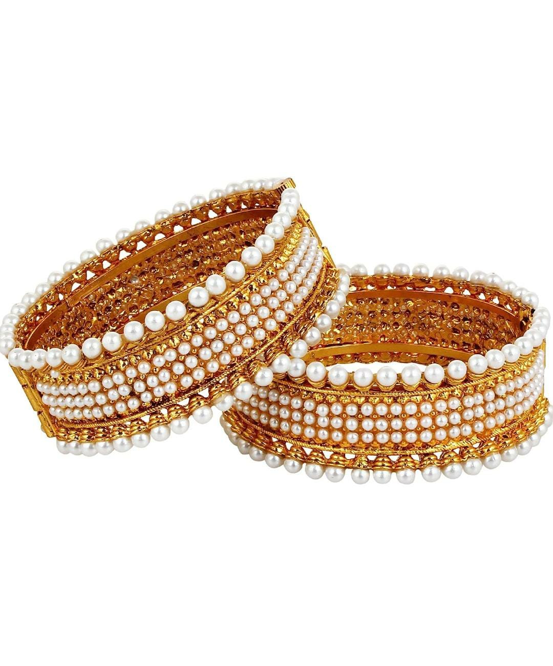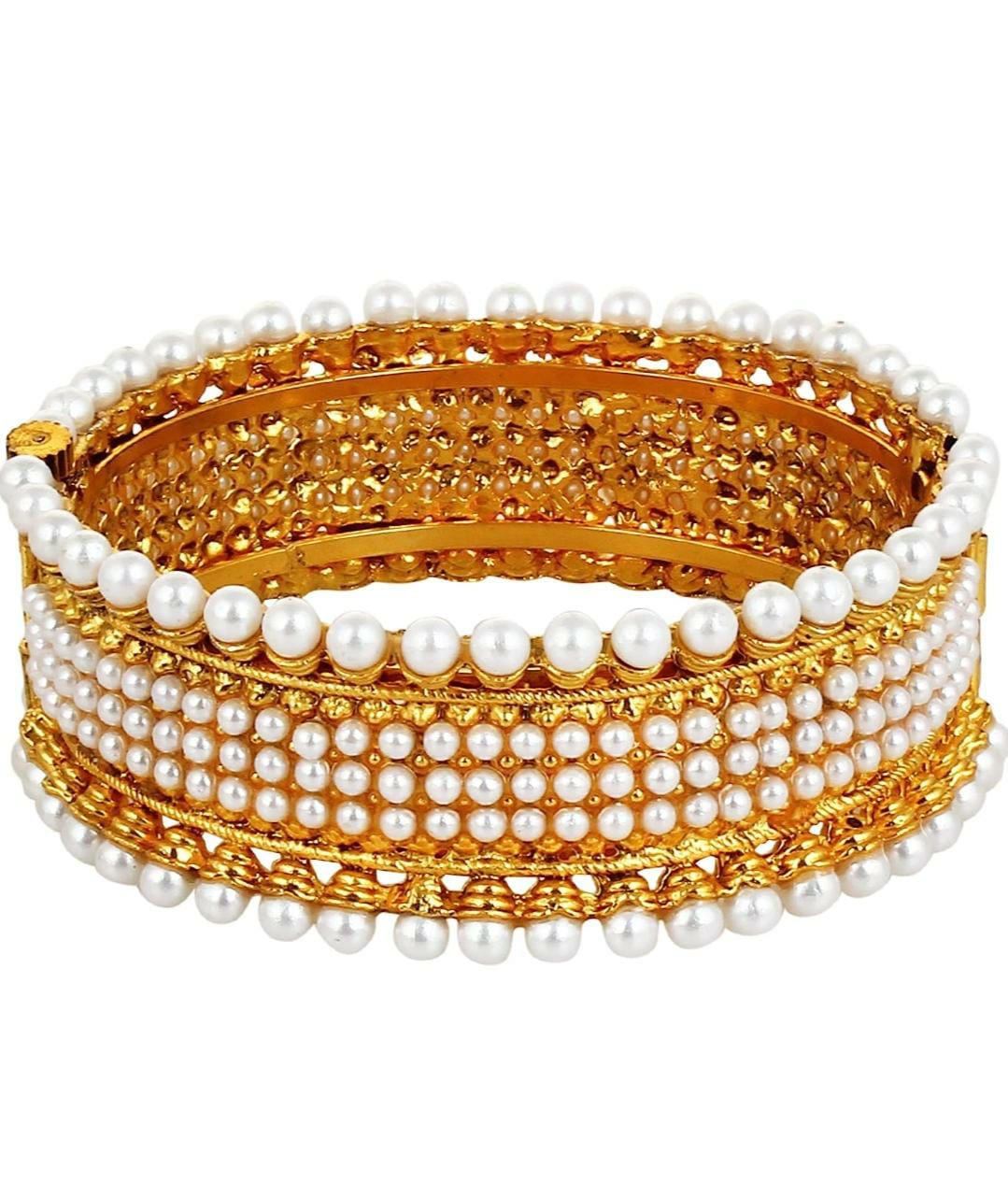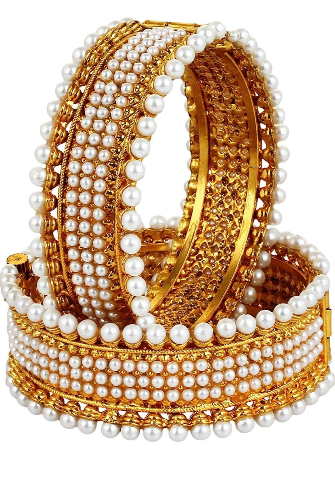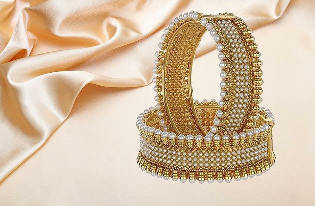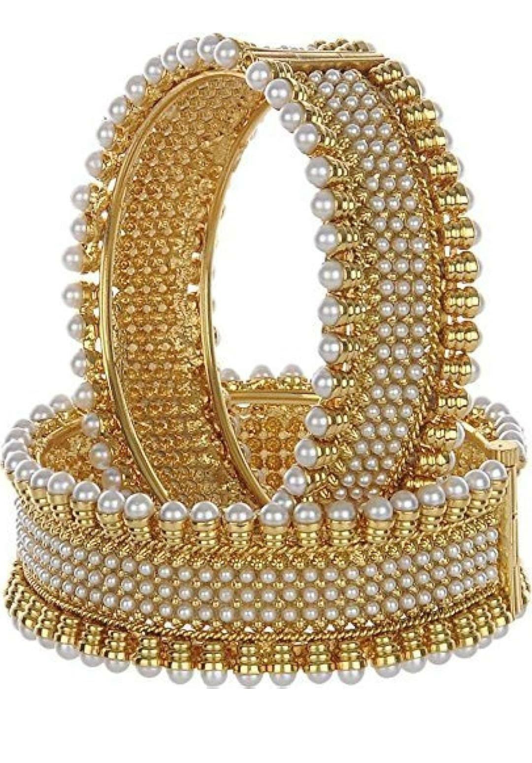 Schmuck-Set mit traditionellen vergoldeten Perlen-Armbändern und Armreifen für Mädchen und Frauen (Größe 2,4 und 2,6)