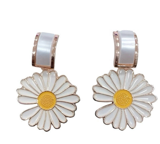 ROSÉGOLD-OHRRINGE MIT GÄNSEBLÜMCHEN, ZARTES HARZ-EMAIL