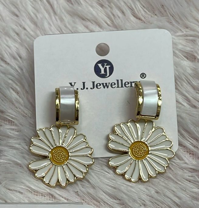Zarte Gold-Email-Ohrringe mit Gänseblümchen-Ohrsteckern aus Kunstharz