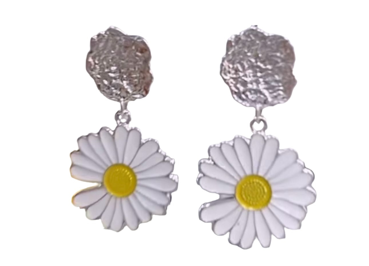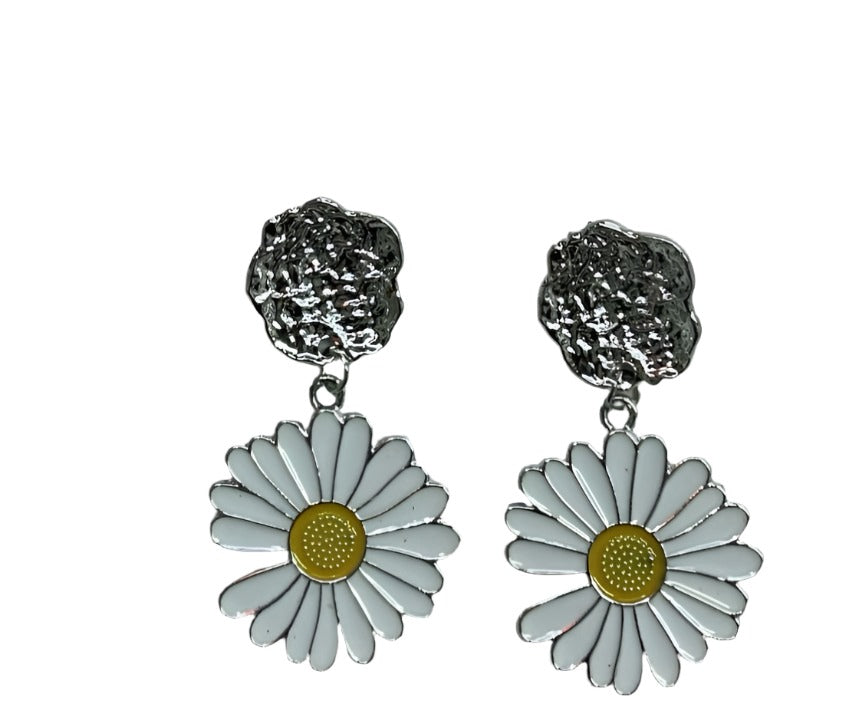 Weißgoldene Gänseblümchen-Ohrringe aus zartem Kunstharz mit Emaille