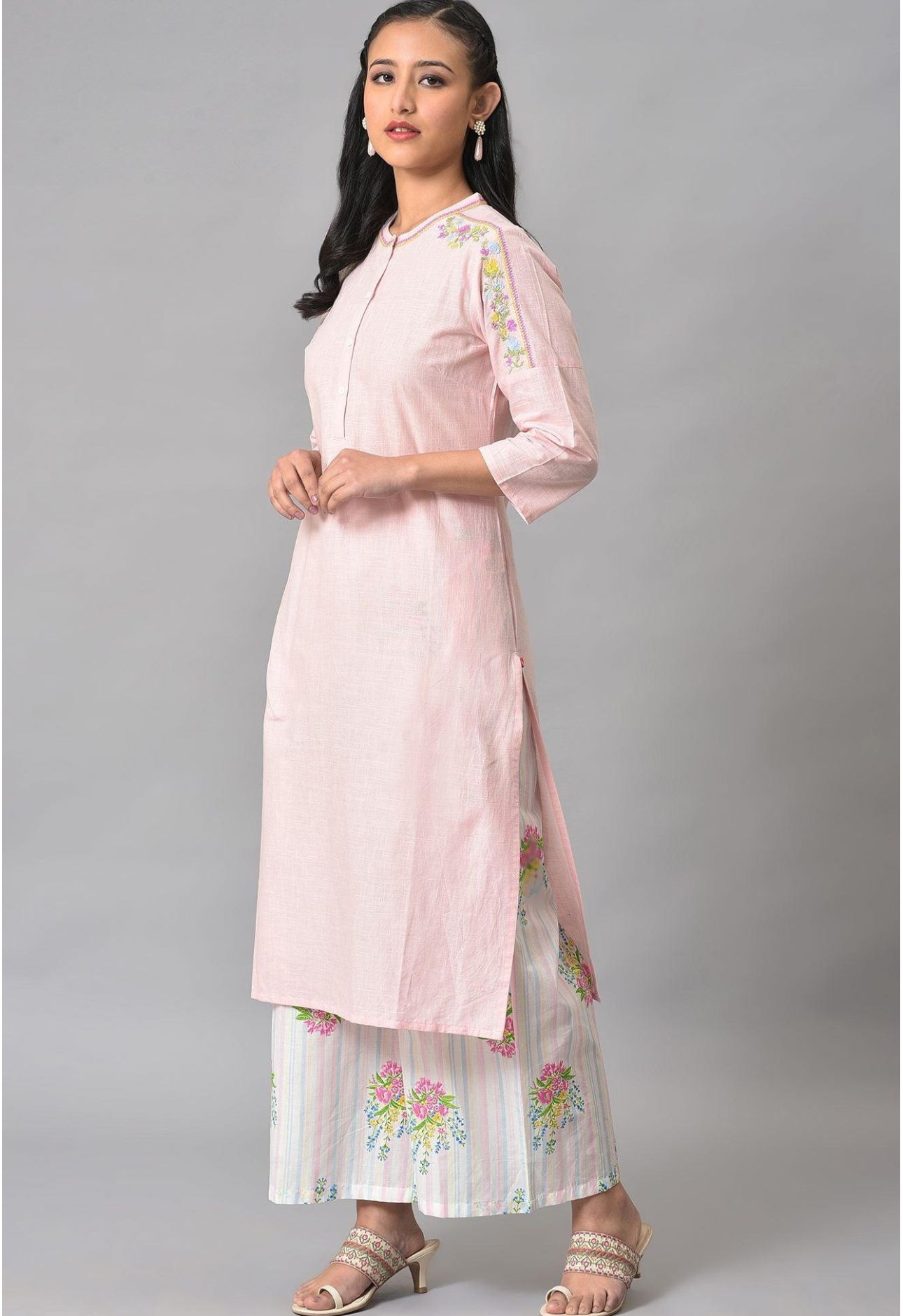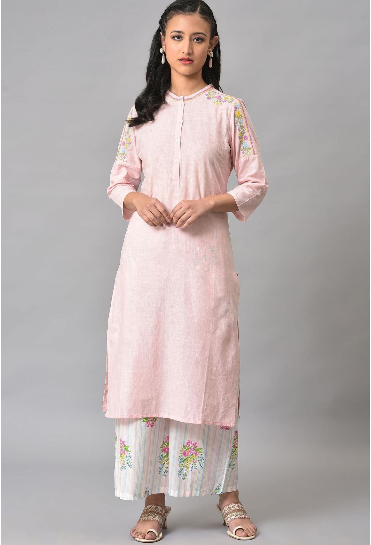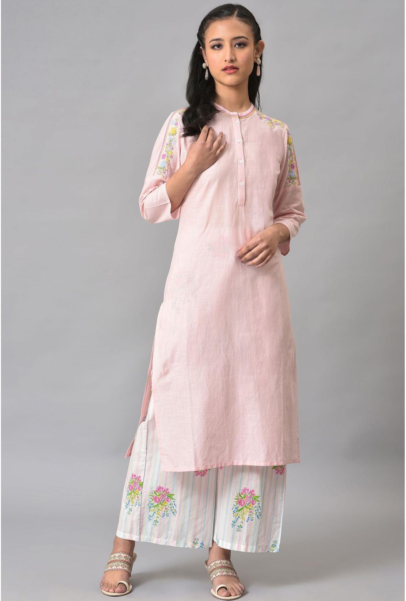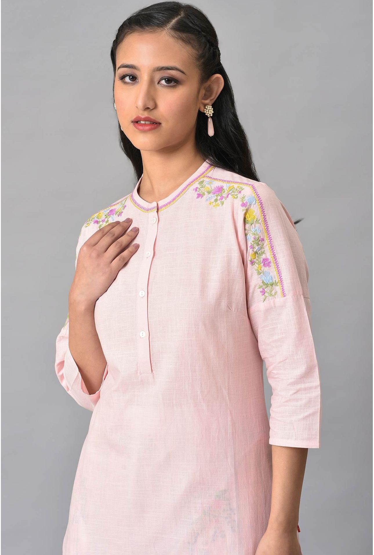 Light Pink Mandarin Collar kurta With Embroidery in Germany