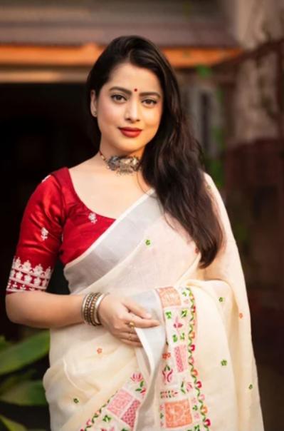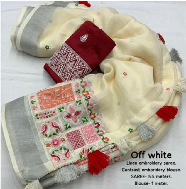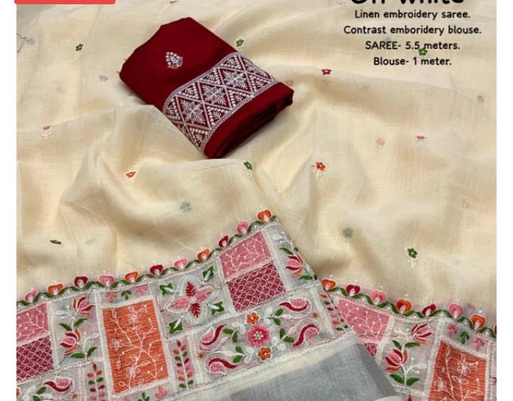 Look oh-so-lovely in this designer linen saree! Featuring classic Excelle nt Thread - Embroidered Linen Saree, it's the ideal way to make a statement wherever you go. Prepared to turn heads? Put on this saree and be ready to wear saree
