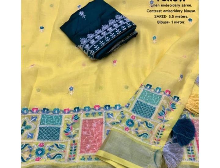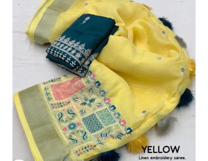 Look oh-so-lovely in this designer linen saree! Featuring classic Excellent Thread- Embroidered Linen Saree