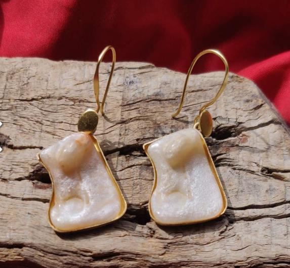 Mother of Pearl Gold Polish Silver Earrings in Germany