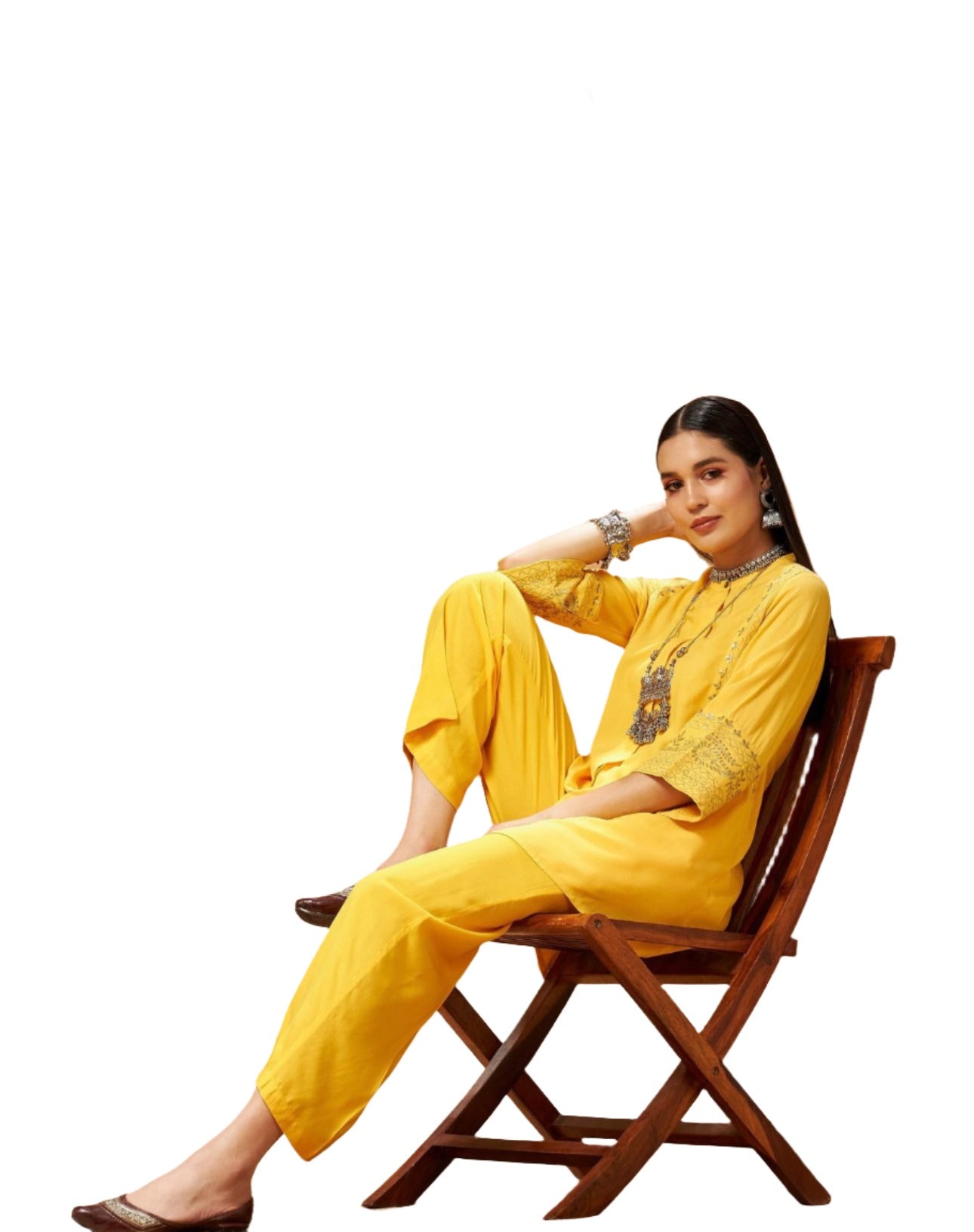 Gelbes besticktes Damenoberteil mit Palazzos