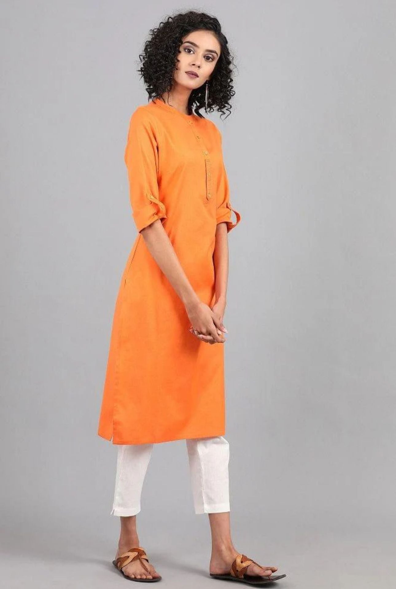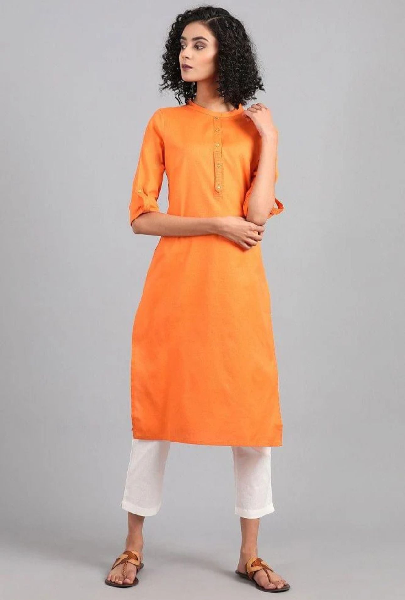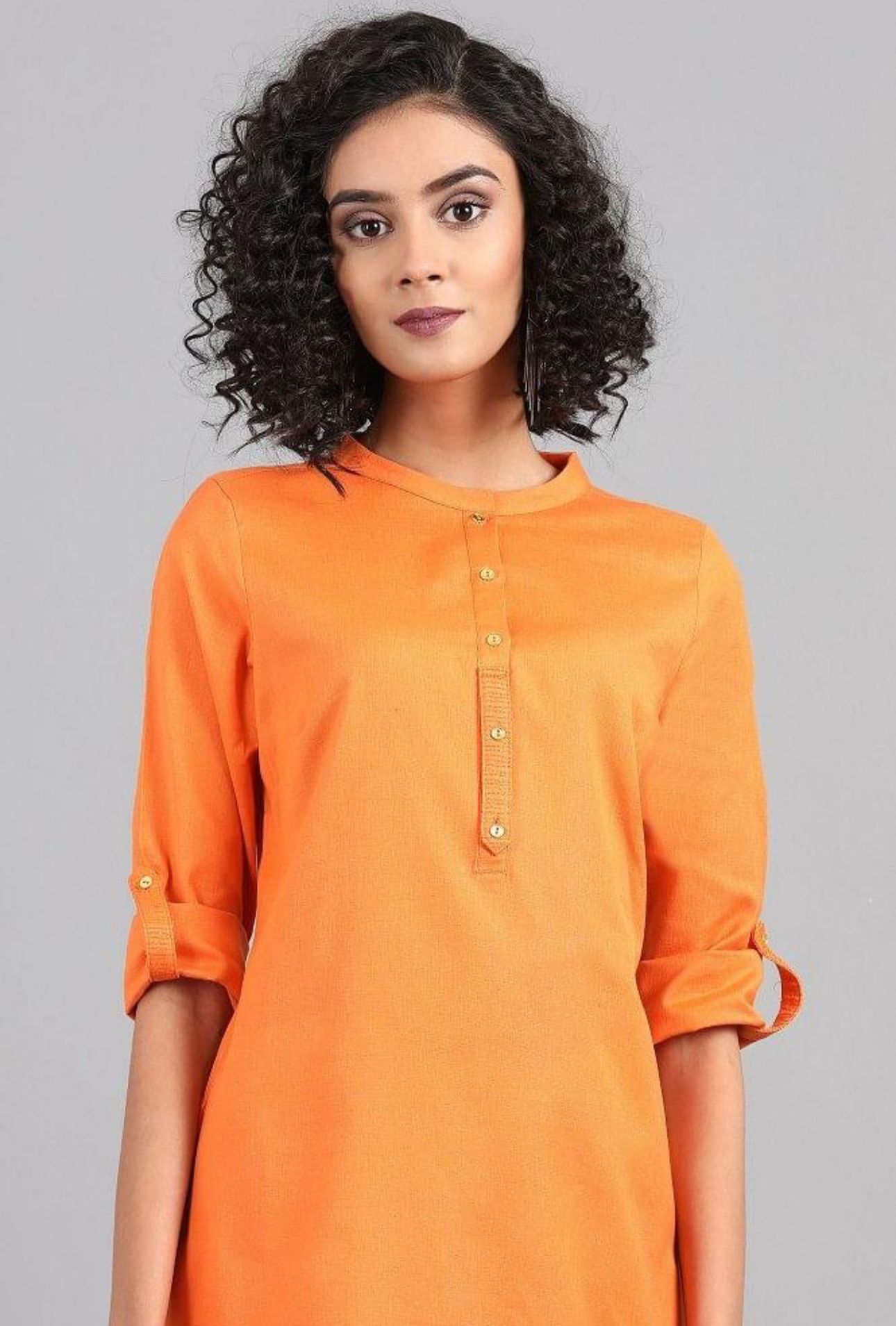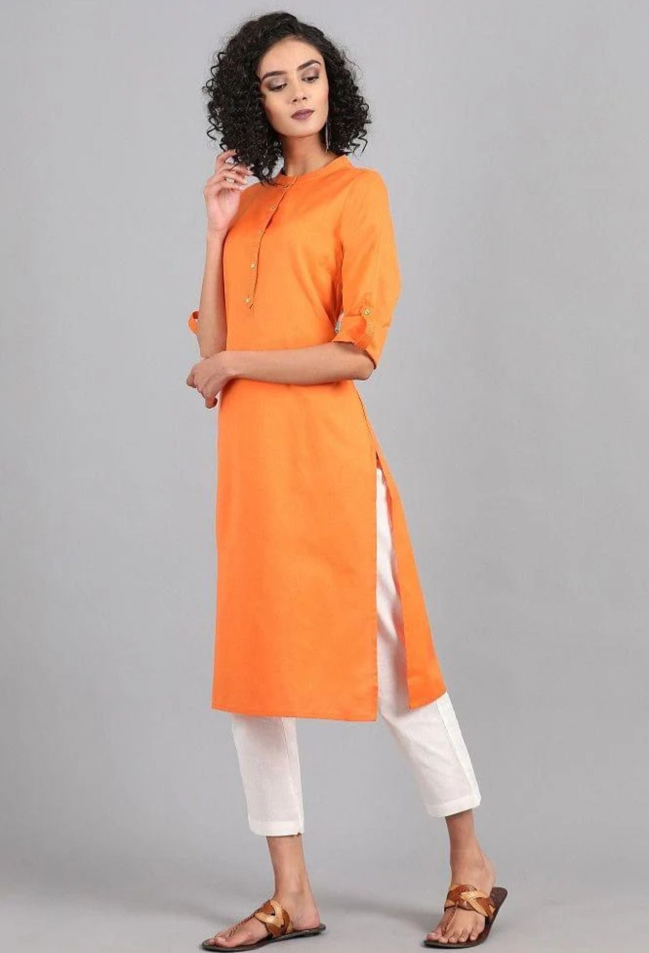 Orange Mandarin Neck Solid kurta in Germany