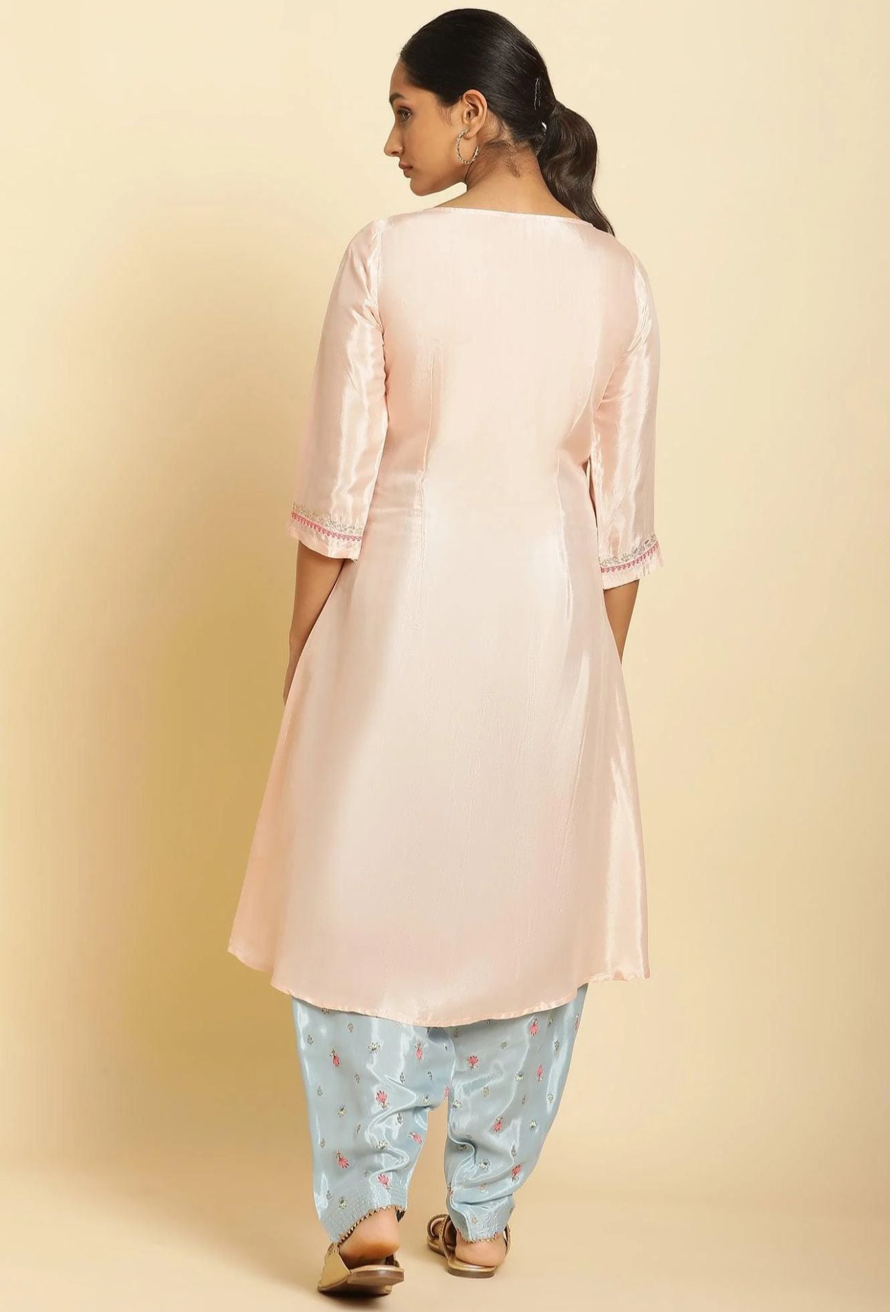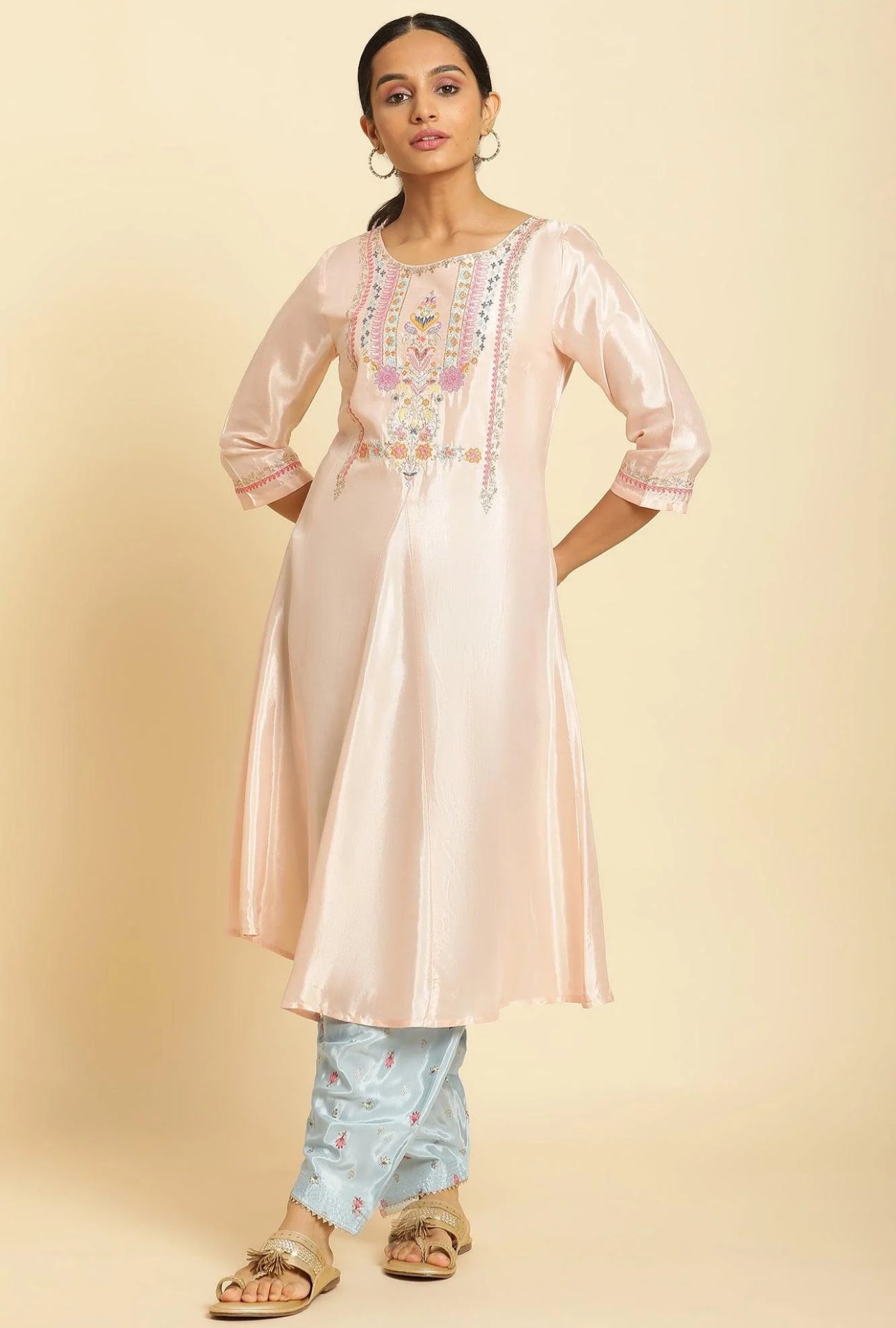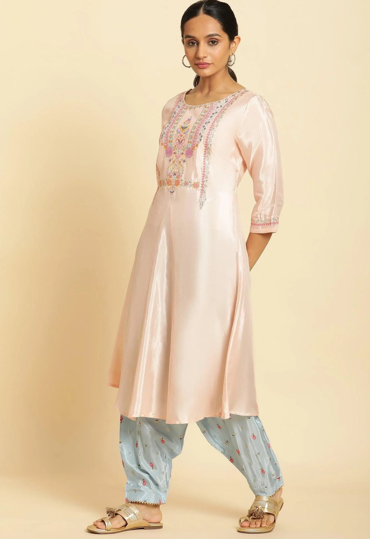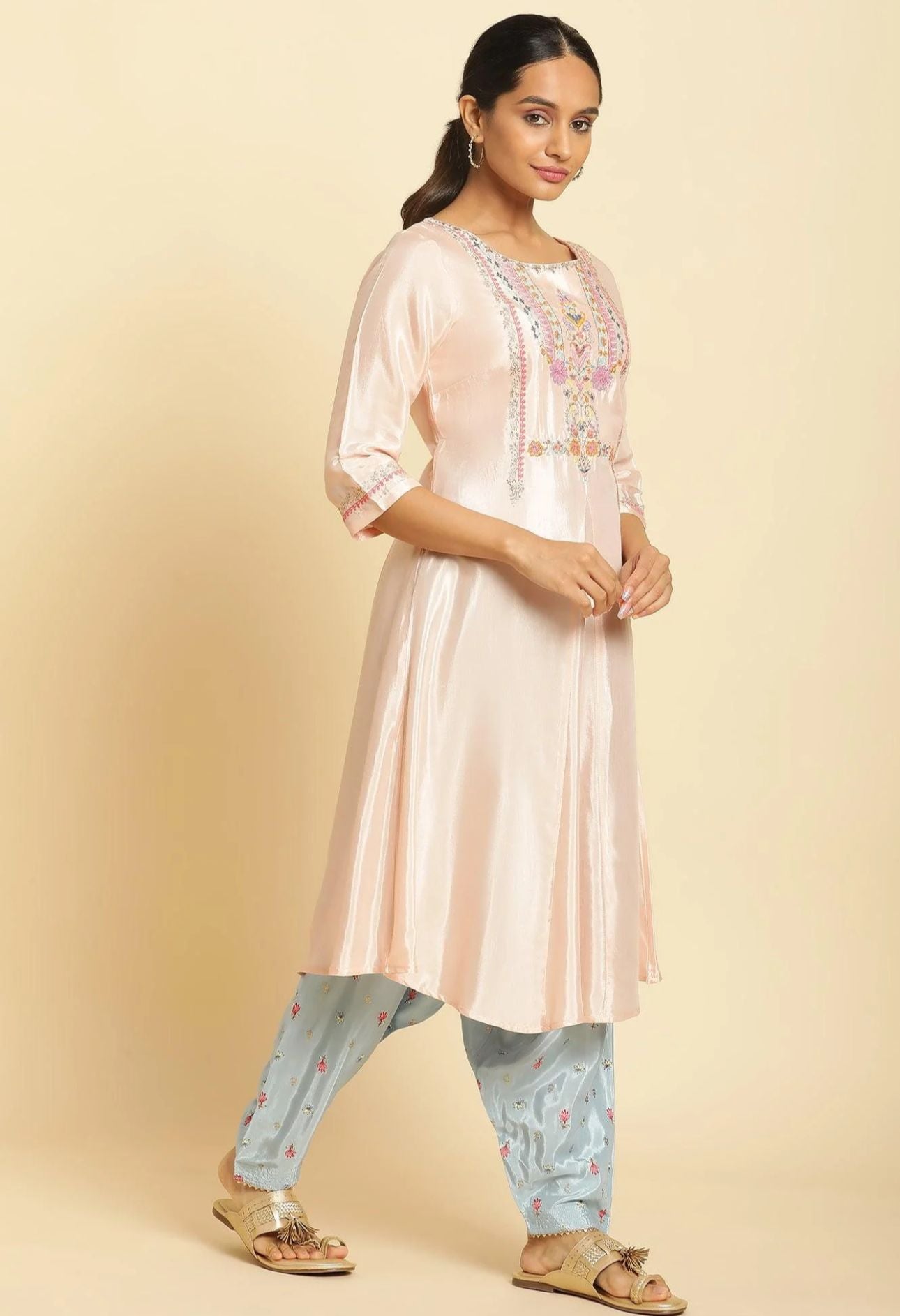 Peach Embroidered Flared Kurta