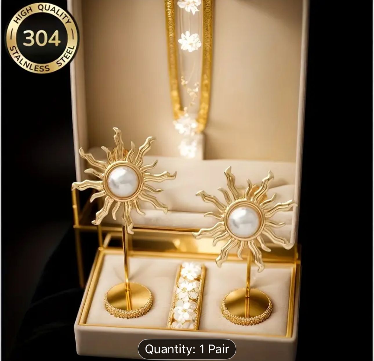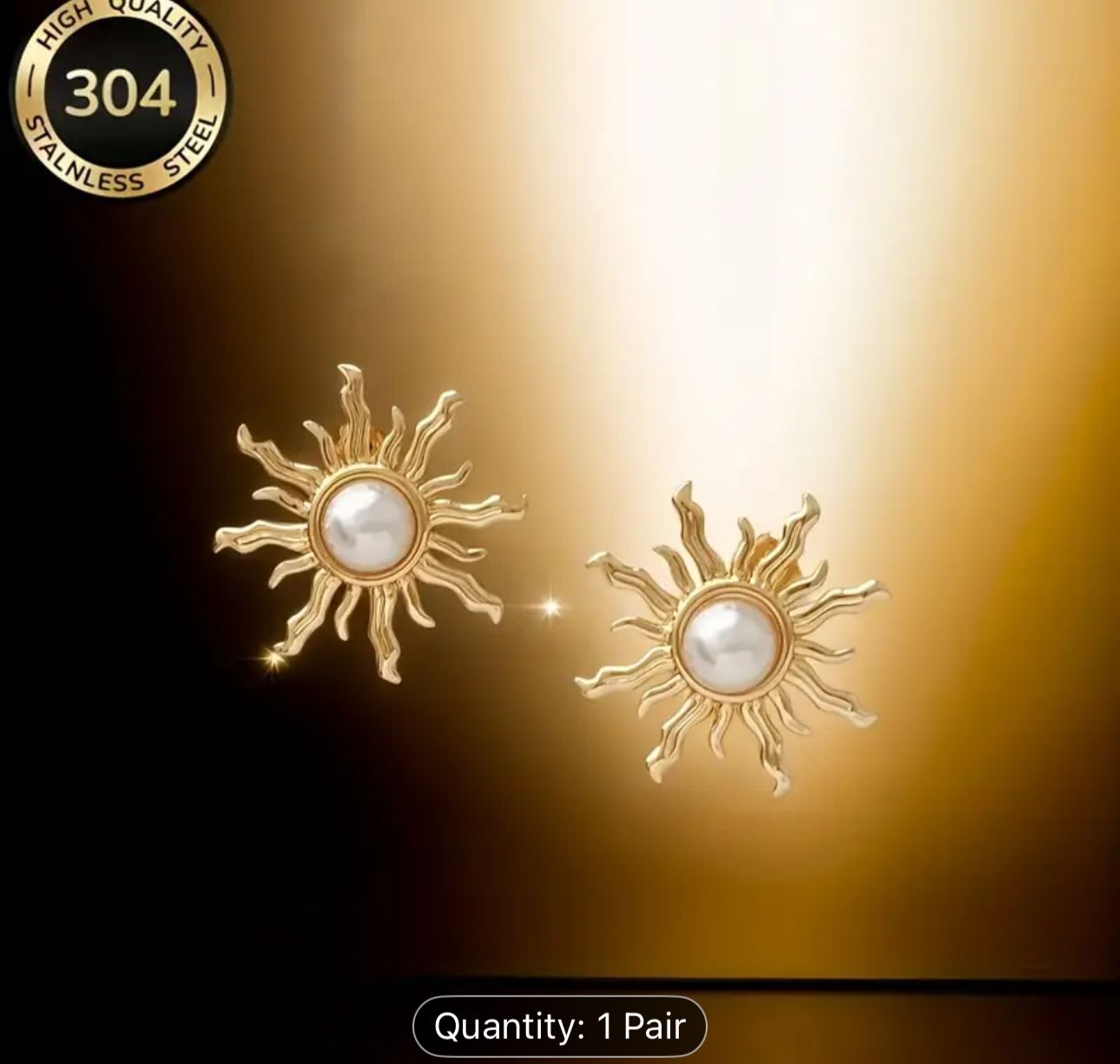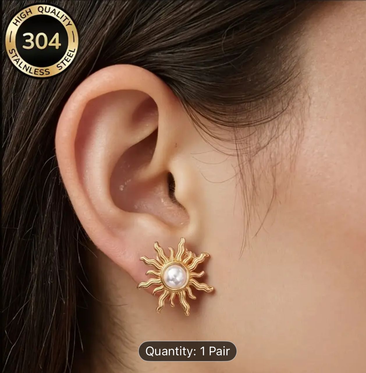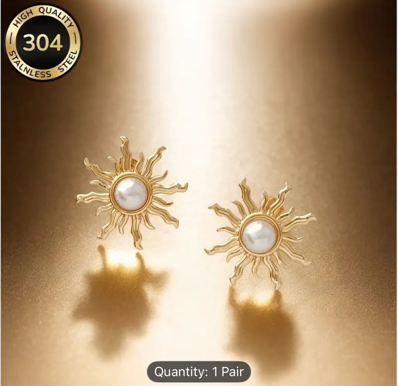 Pearl Sun Earrings Exaggerated Sun Earrings