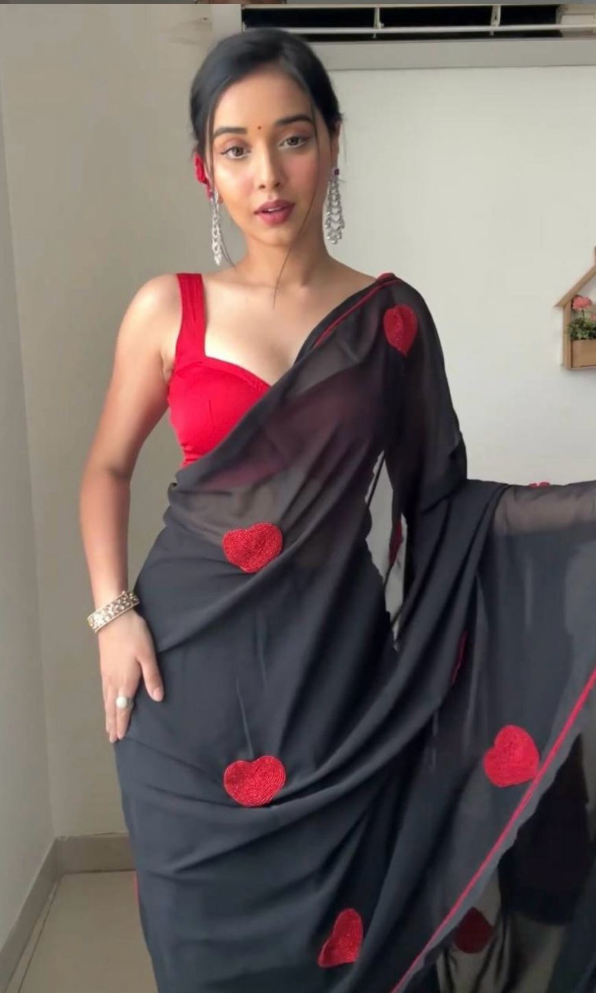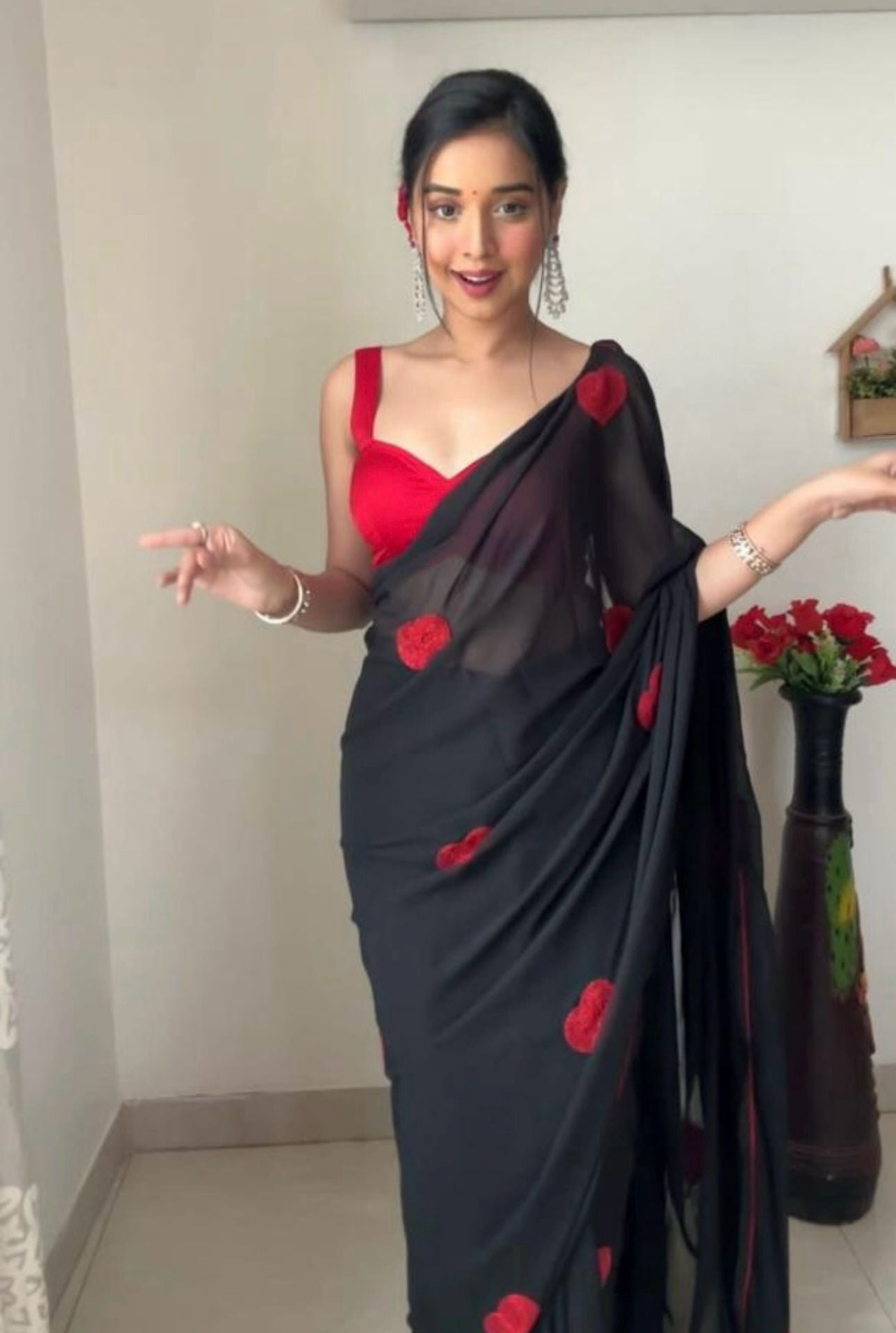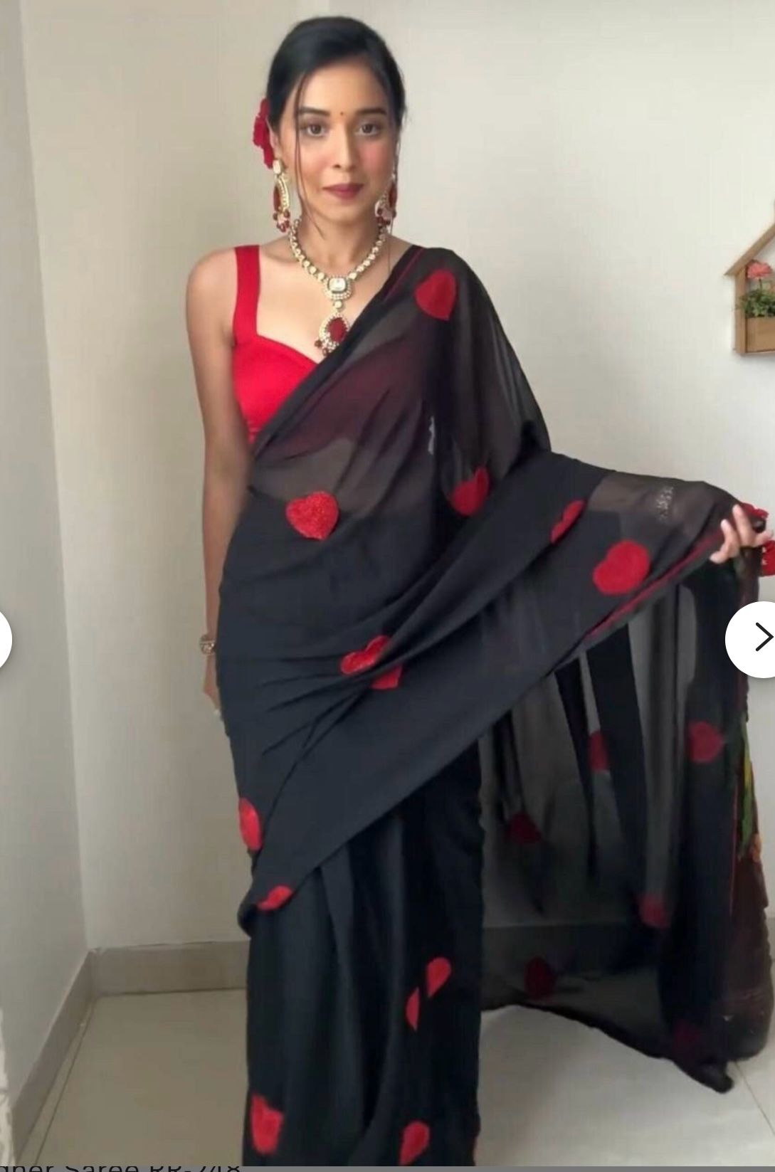 Schwarzer Saree Sari mit ungenähter Bluse, bereit zum Tragen, Bollywood Saree, indische Hochzeitskleidung, Partykleidung, traditioneller Saree Designer Saree