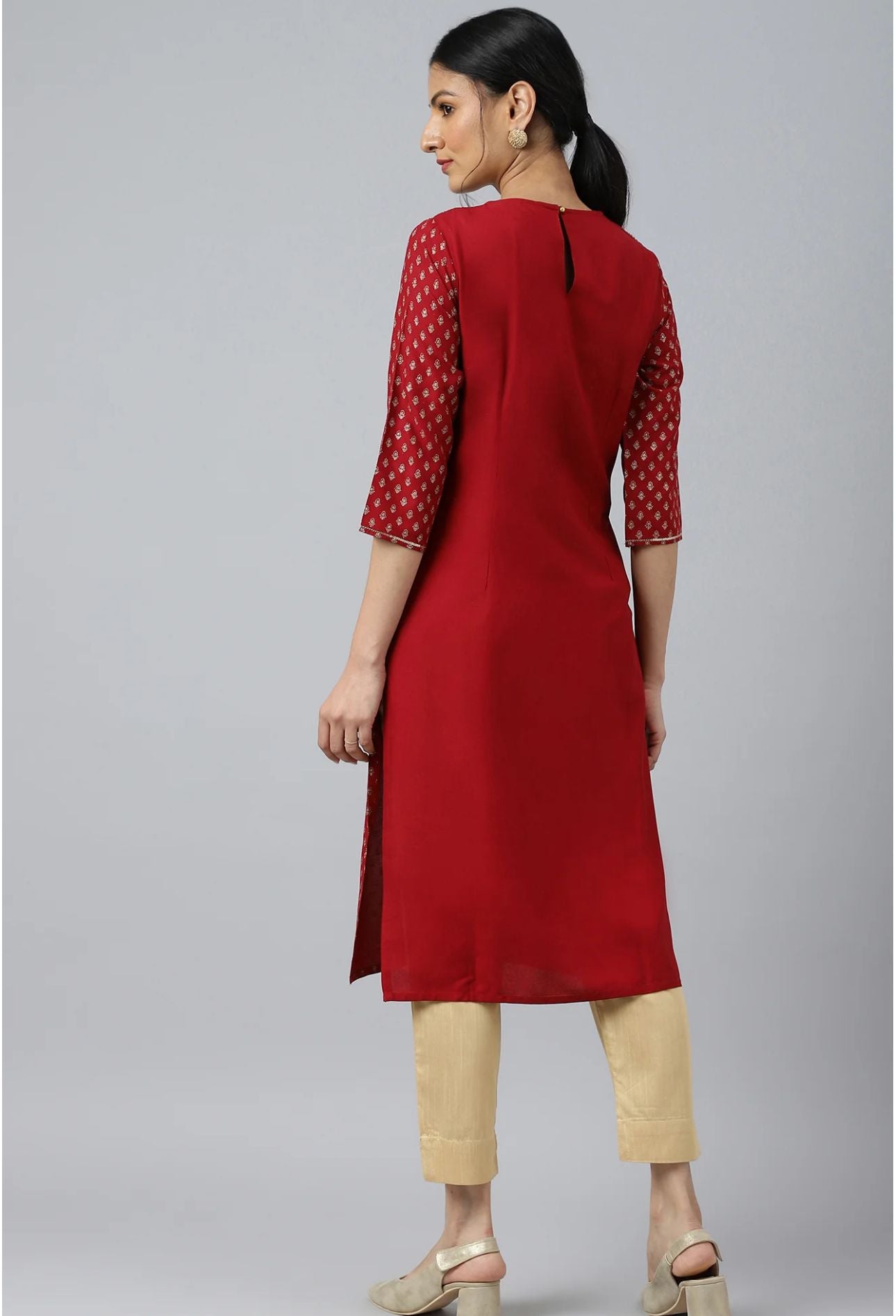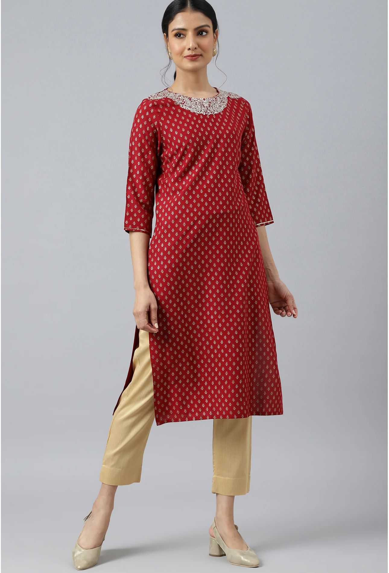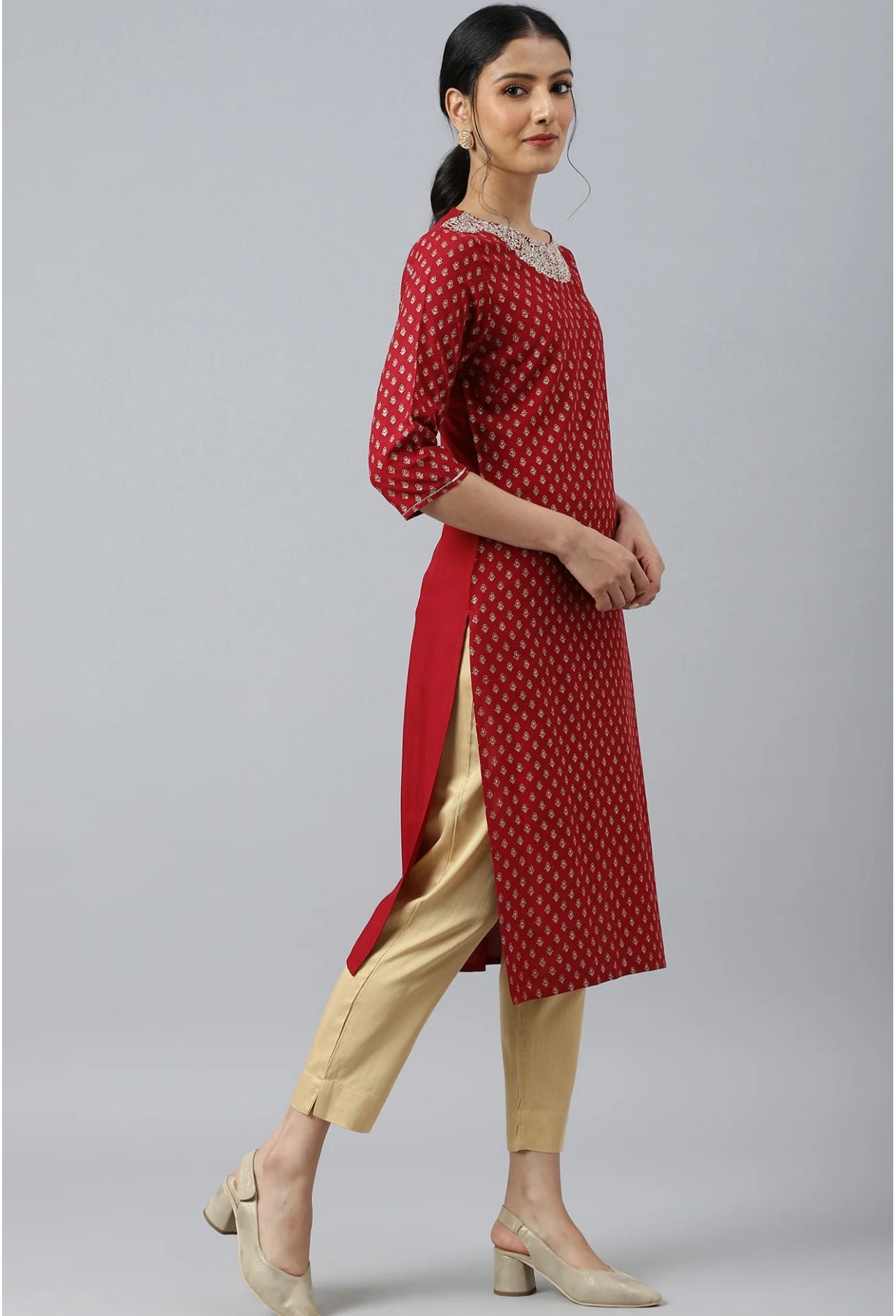 Red Printed kurta With Metallic Embroidery in Munich