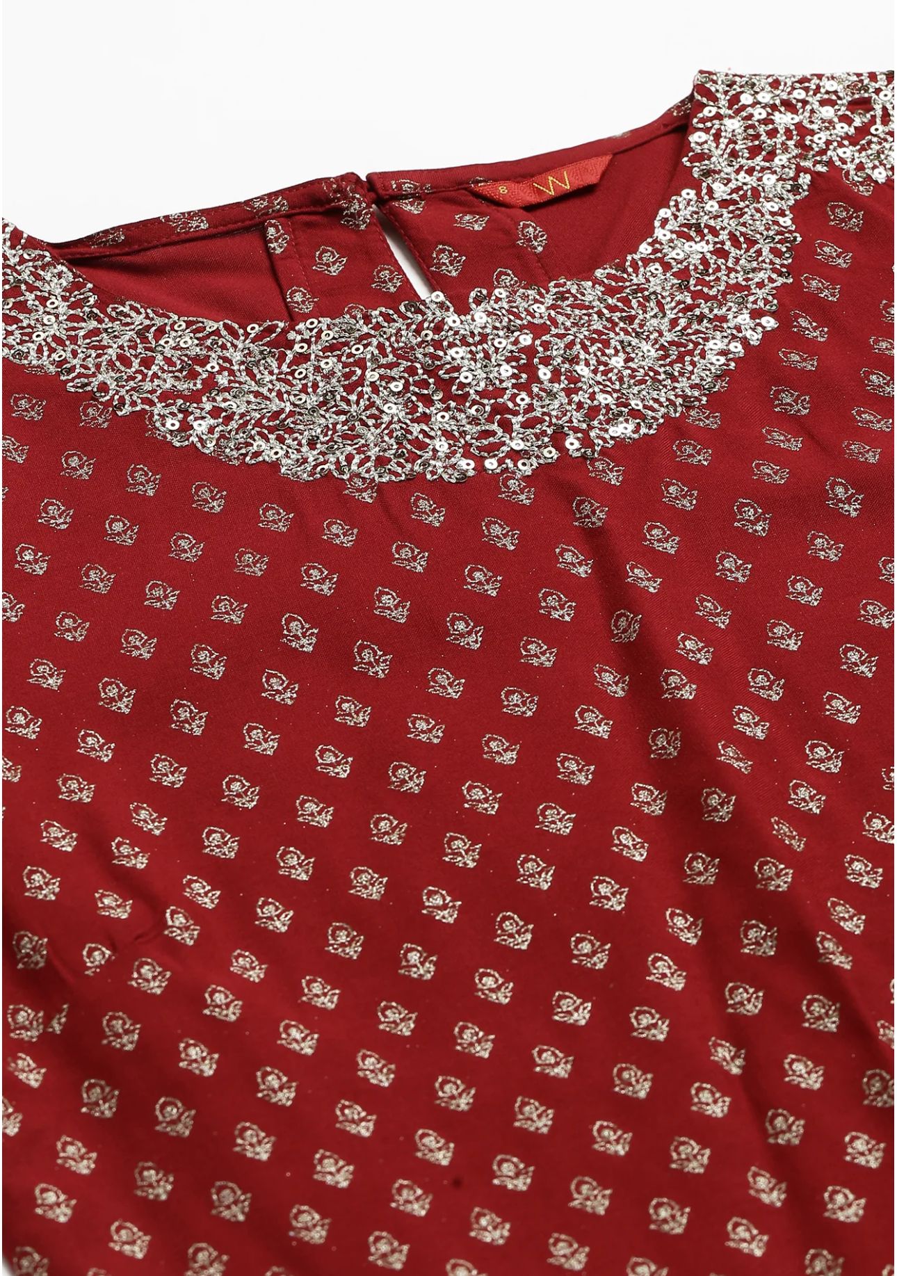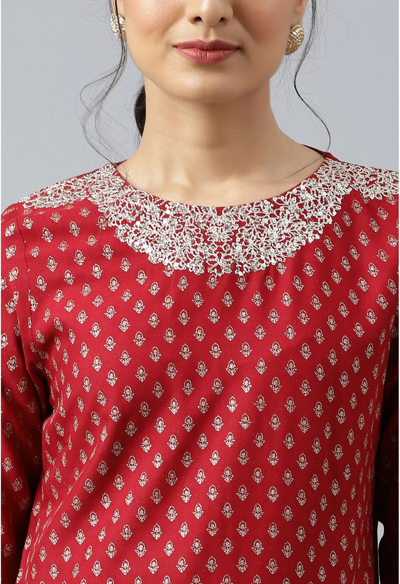 Red Printed kurta With Metallic Embroidery