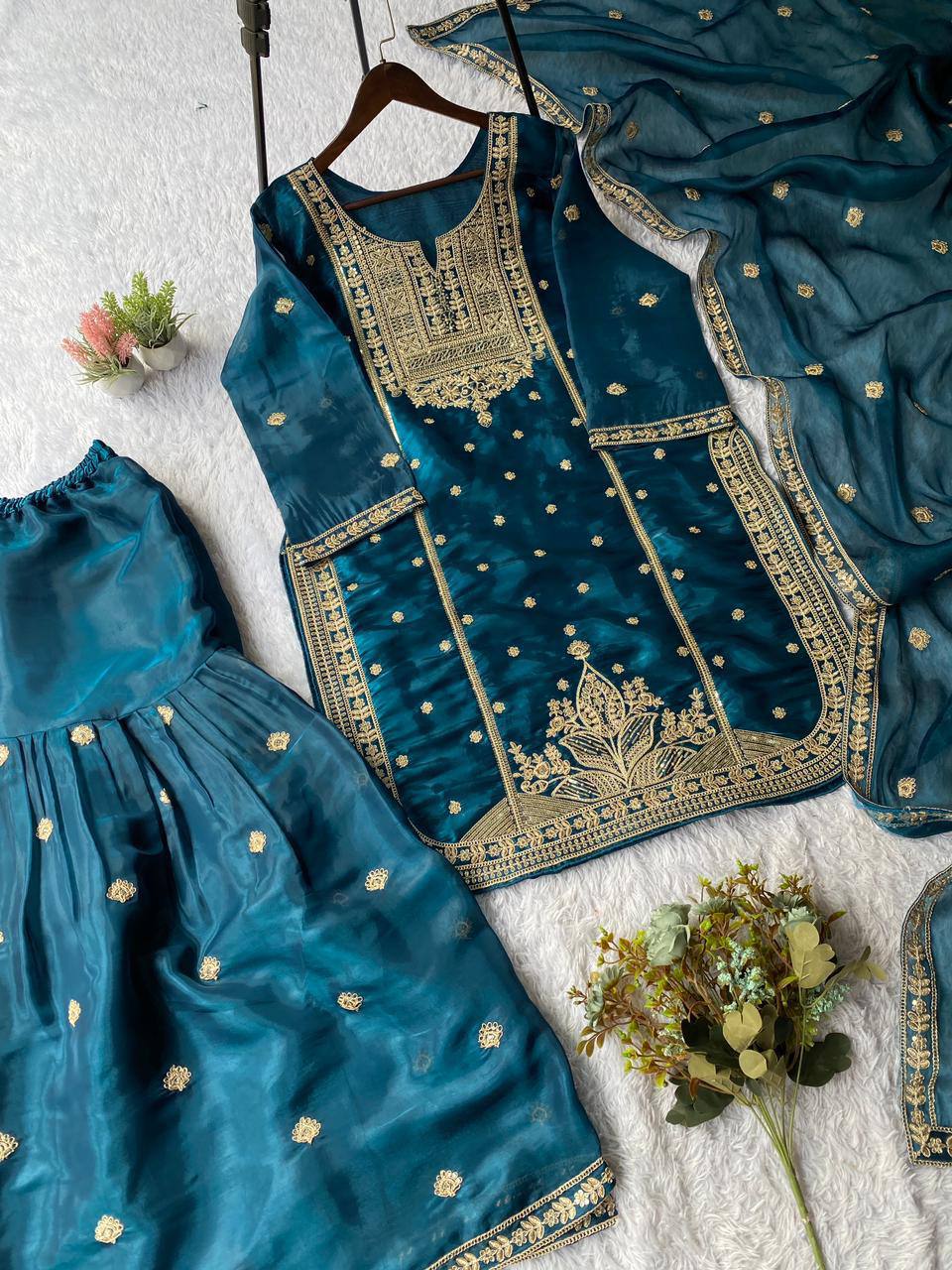SEQUENCE EMBROIDERED TOP, SARARA AND DUPATTA IN MUNICH