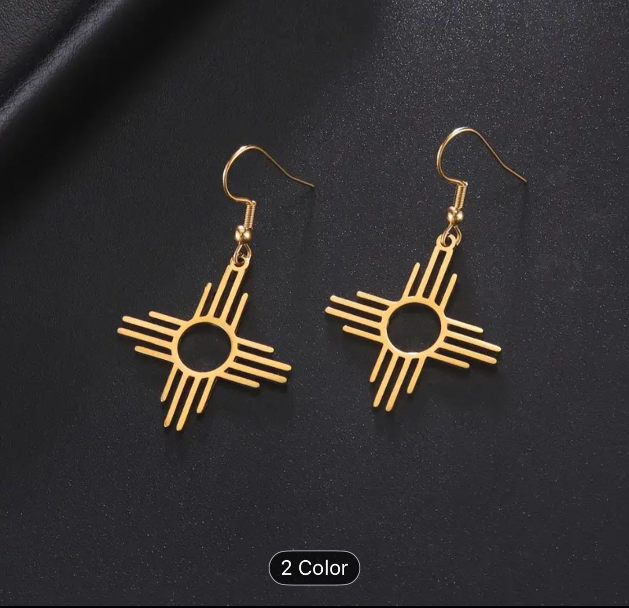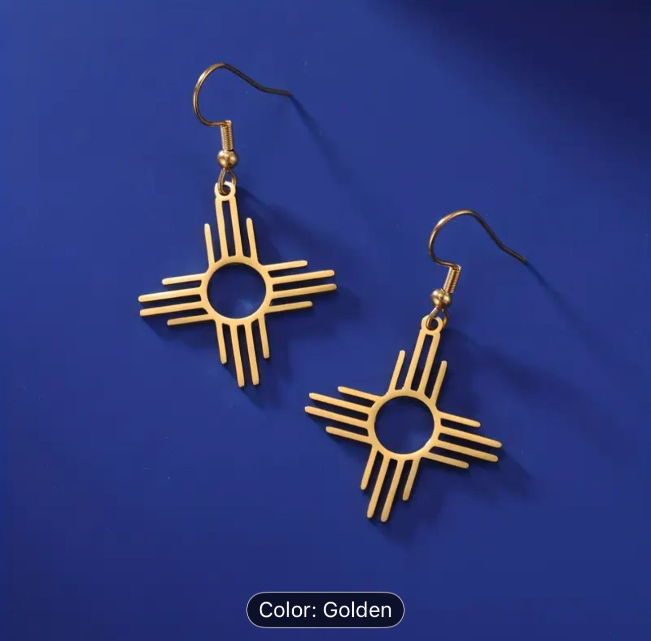 Sun Dangle Earrings Stainless Steel Gold Color Women Earrings