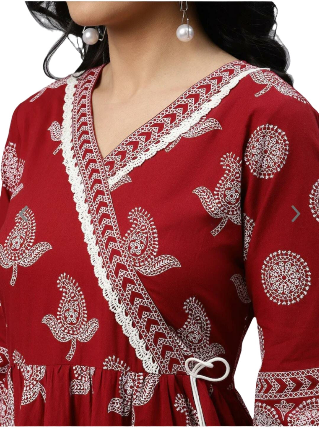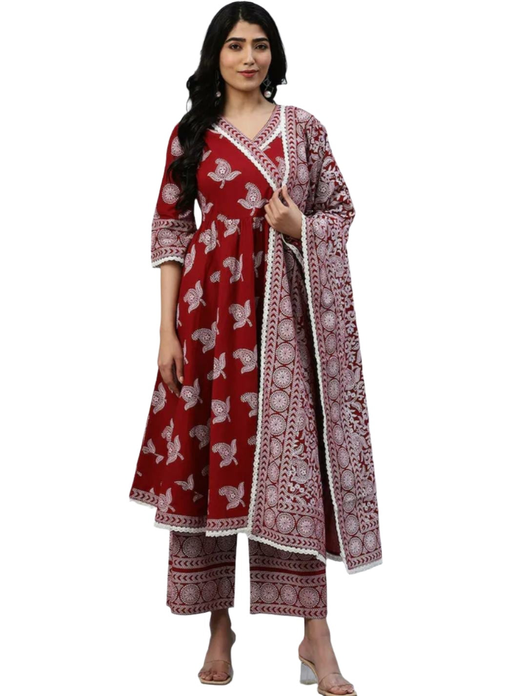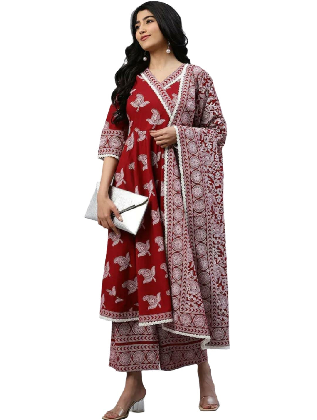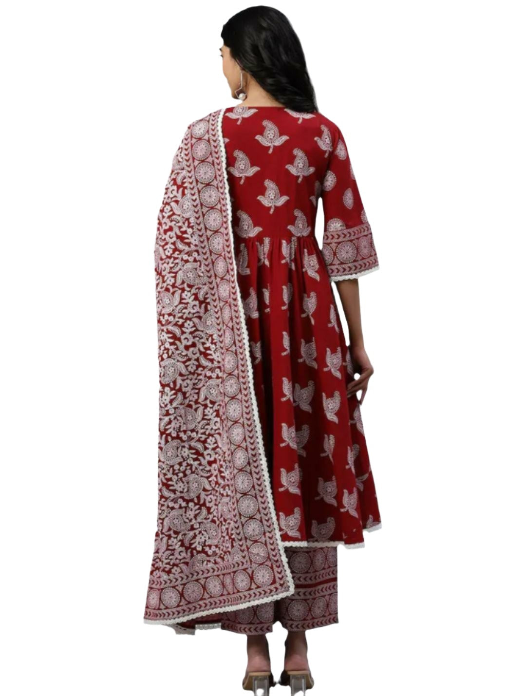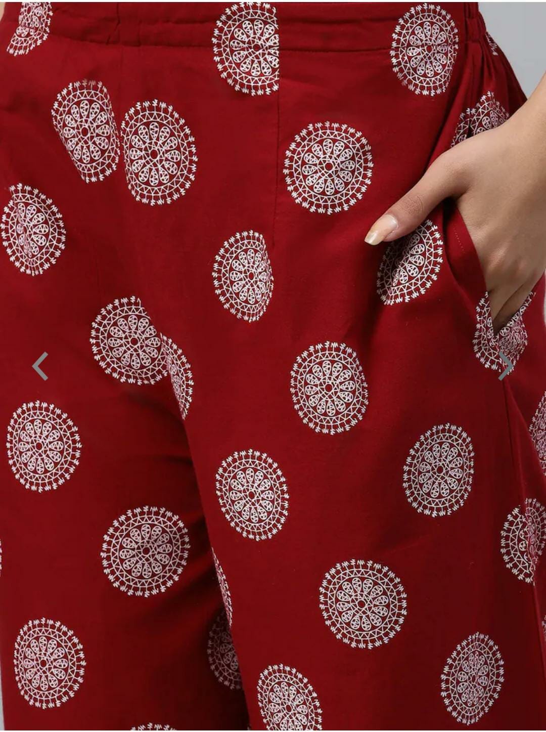Kastanienbraun bedruckte Kurta für Damen mit Palazzos und Dupatta