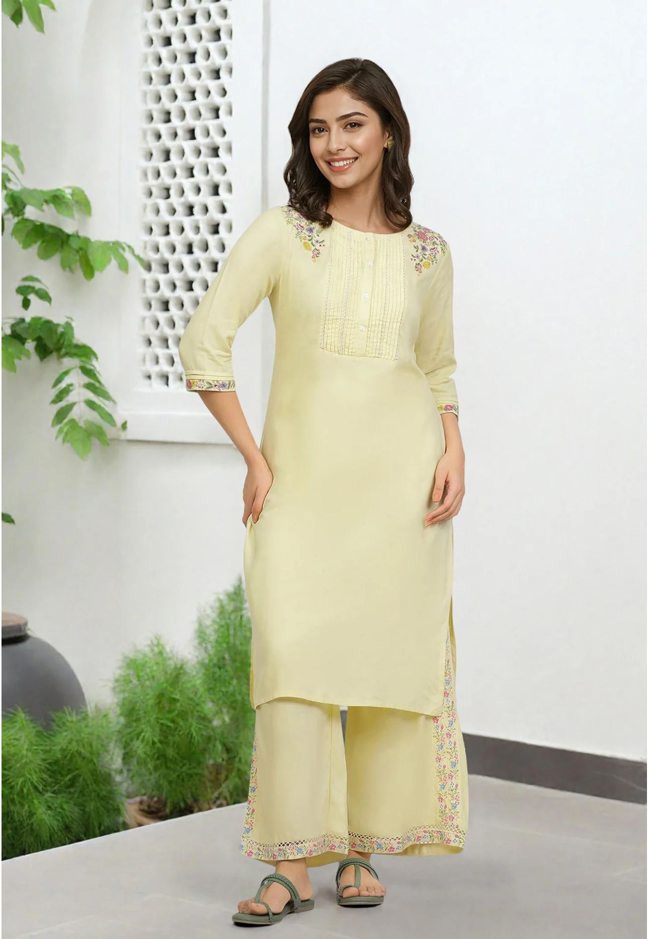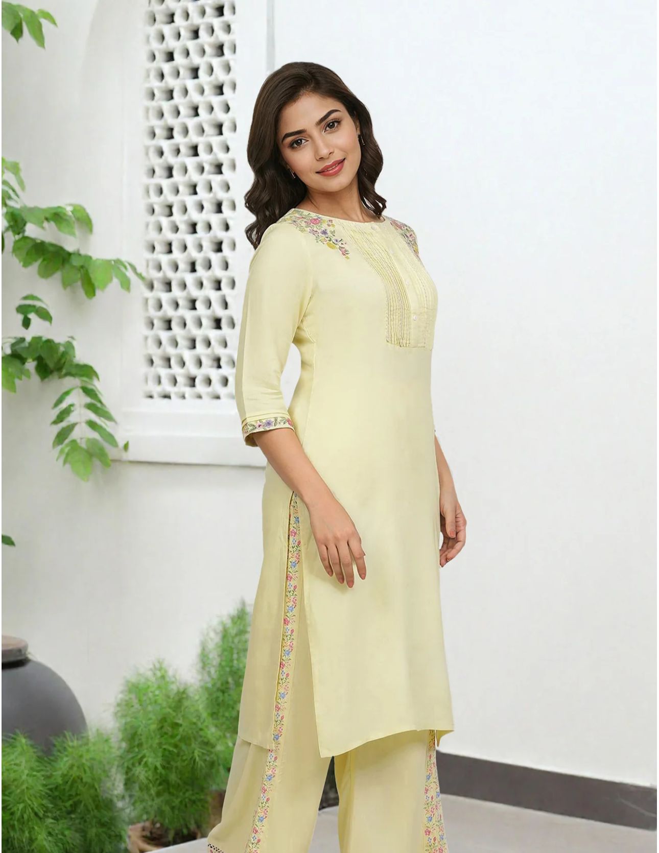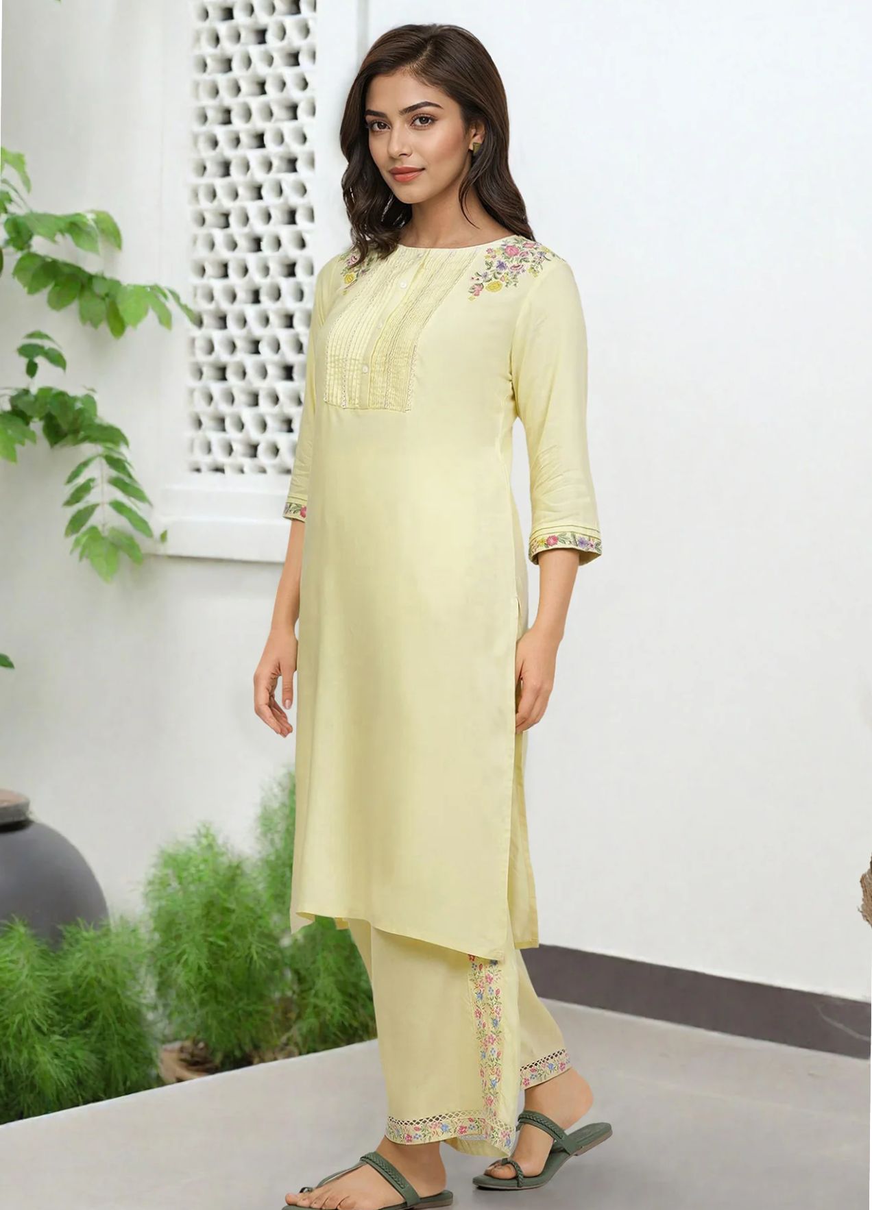 Yellow Embroidered Rayon Straight Kurta in Munich