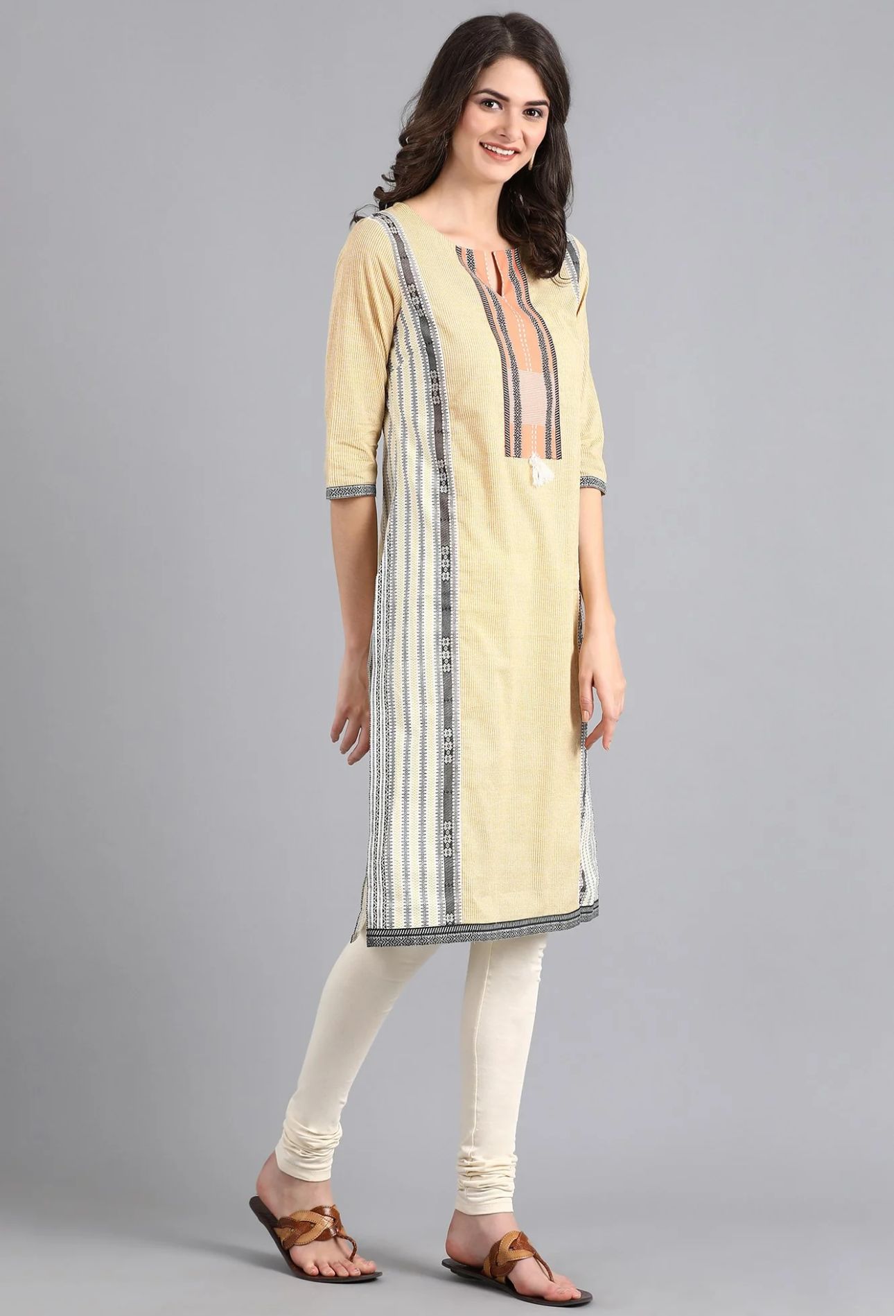 Yellow Round Neck Printed kurta