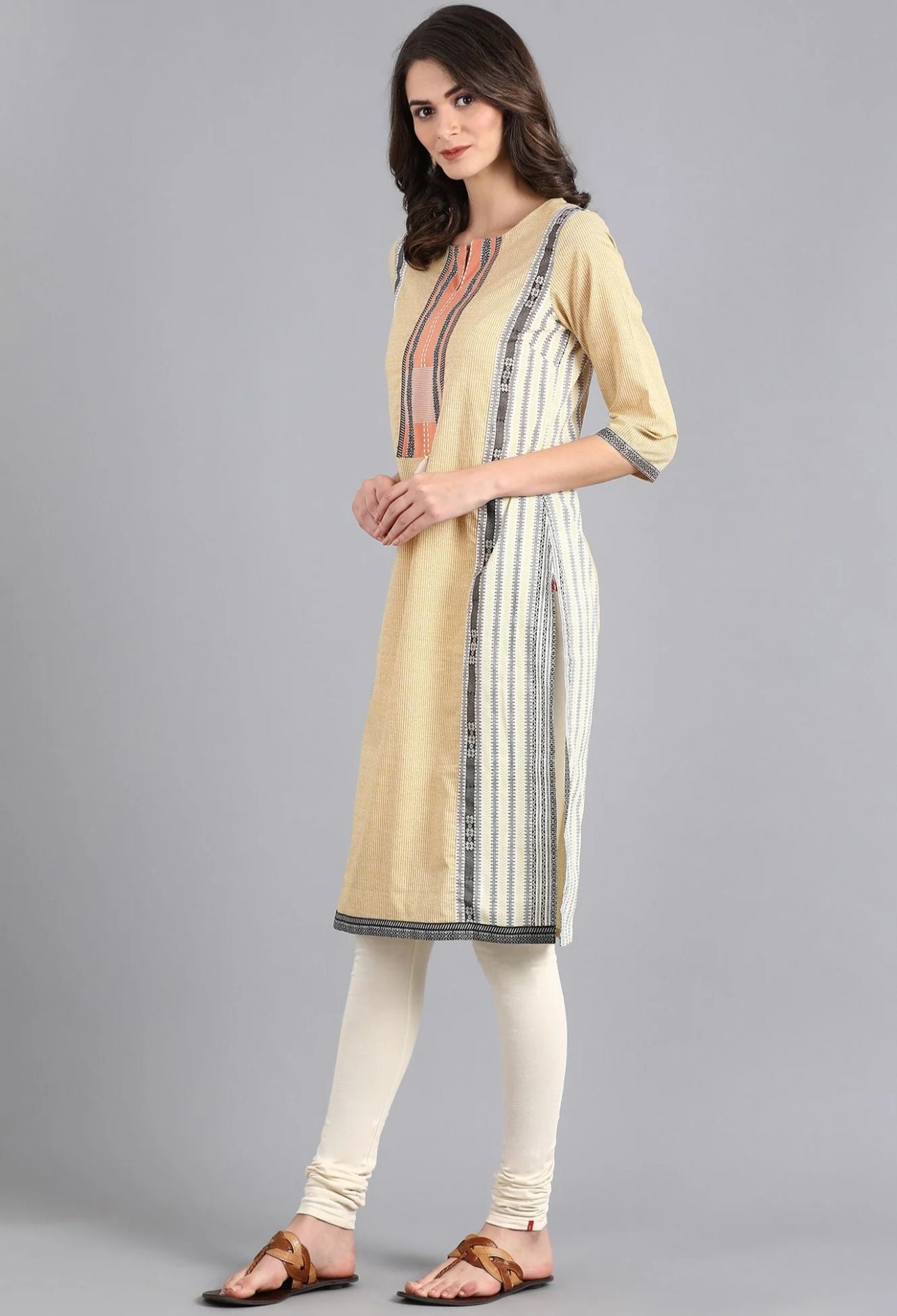 Yellow Round Neck Printed kurta in Germany