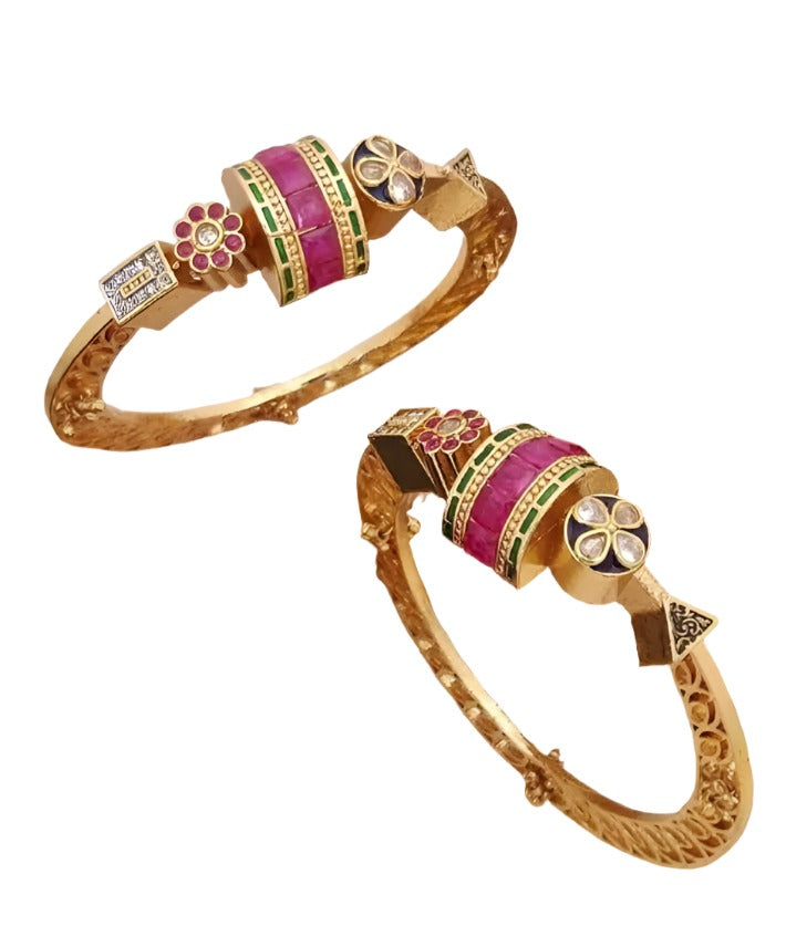 This Gold Plated Bangle Set For Women is made of Brass. Traditional Jewellery Loved by every Woman. Women love jewellery more than anything else. They wear jewellery on every occasion (Weddings, Engagements, Parties, festivals). We present an exclusive range of intricately designed fashion jewelry in various captivating designs and colors and we make sure that our range of Fashion Jewelry will galvanize you and will add glow to your outfit because our products are antique, comfortable, eye-catching, and fashion-forward. This Piece of Jewellery will enhance your beauty and compliment your dress. Make your moment memorable with this High-Quality traditional jewellery.