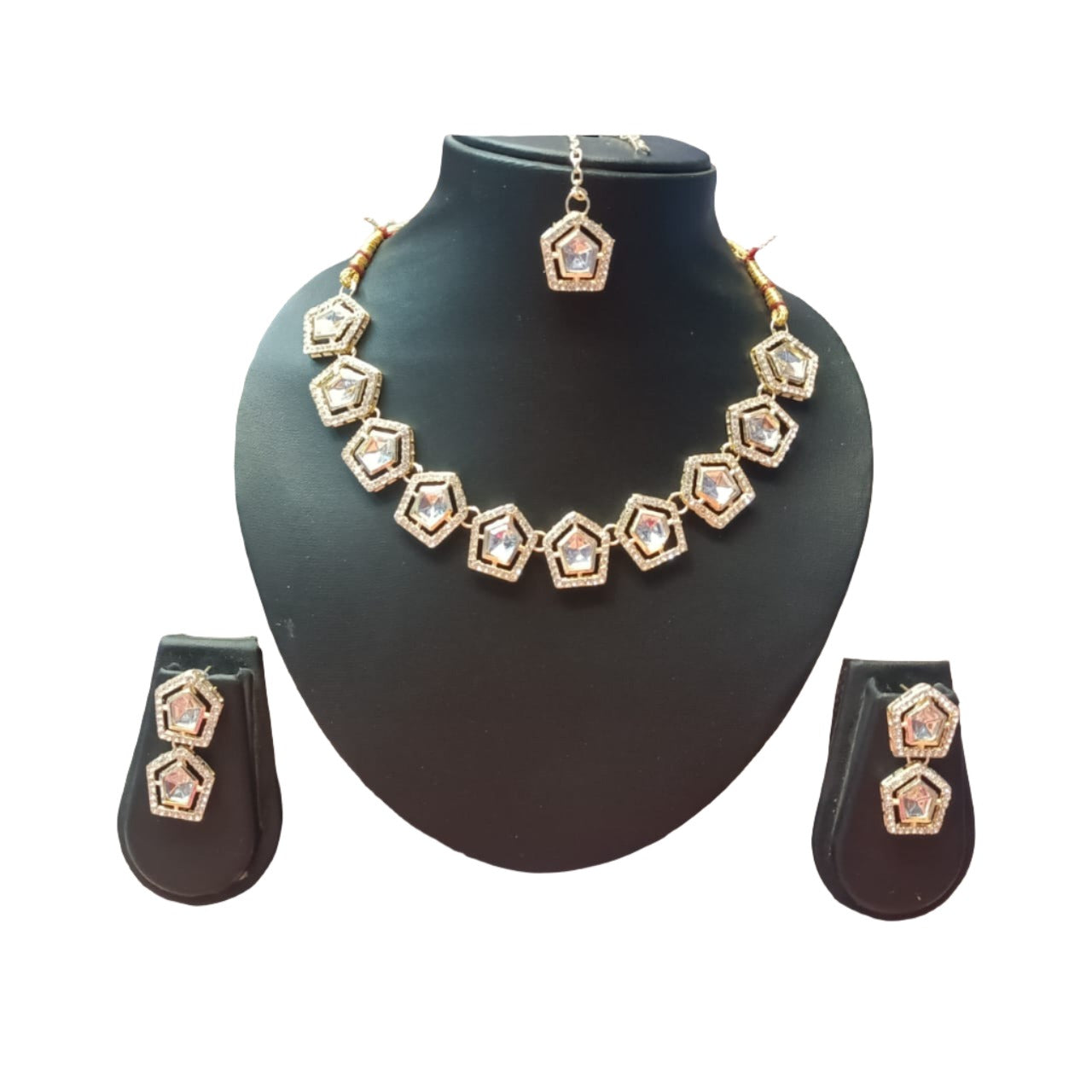 This is Precious Gold Plated American Diamond Kundan Necklace set for woman and girls by ARB TRENDZ. This Necklace suits all type of skin colour and gives you more beautiful look. You can wear this set on daily basis, Love, Religious, Wedding & Engagement, Workwear and all purposes.