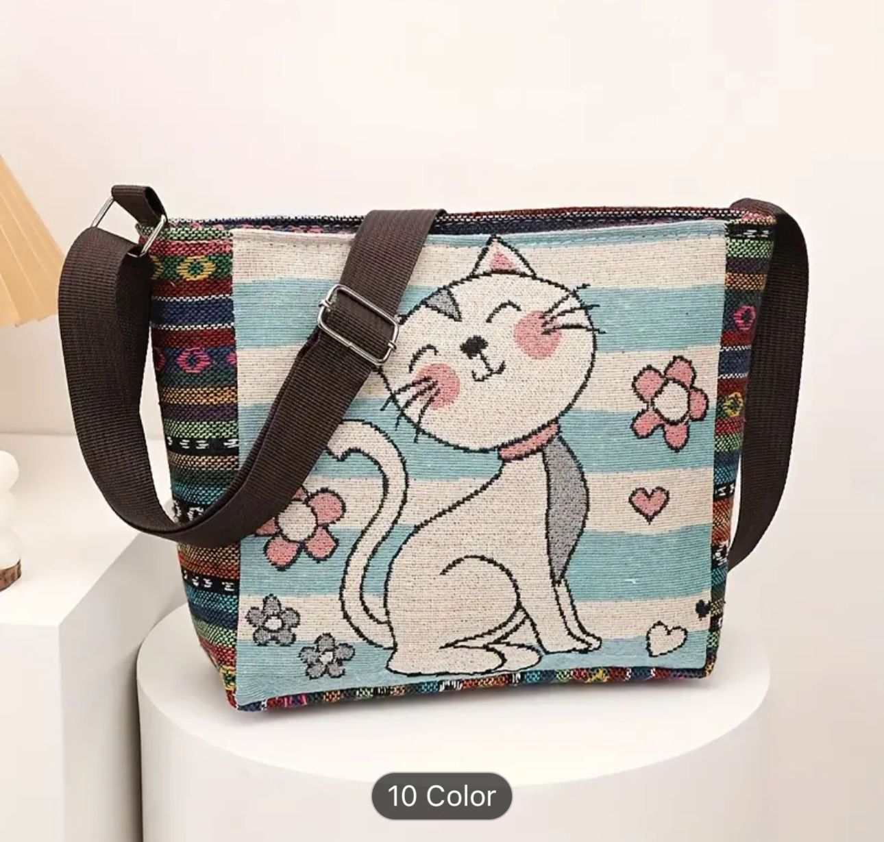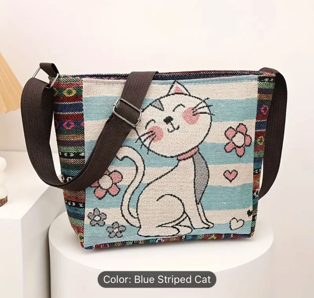 Ethnic Knit Shoulder Bag for Women, Adjustable Strap, Zipper Closure, Foldable Design, Animal Print, Multicolor Fabric, Casual & Stylish