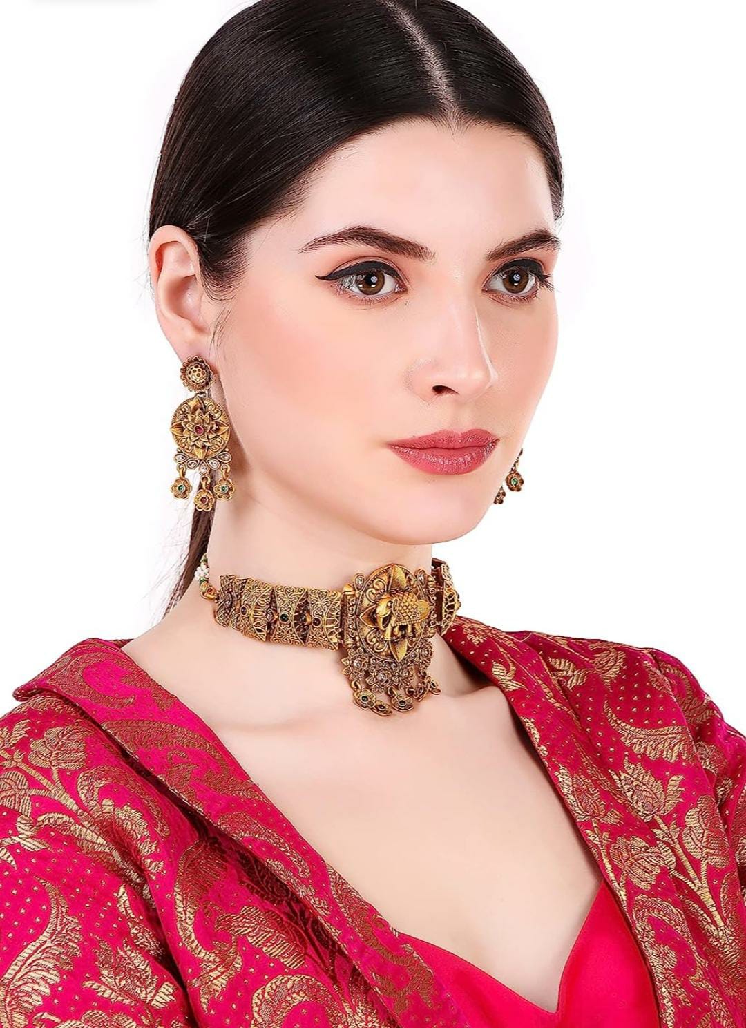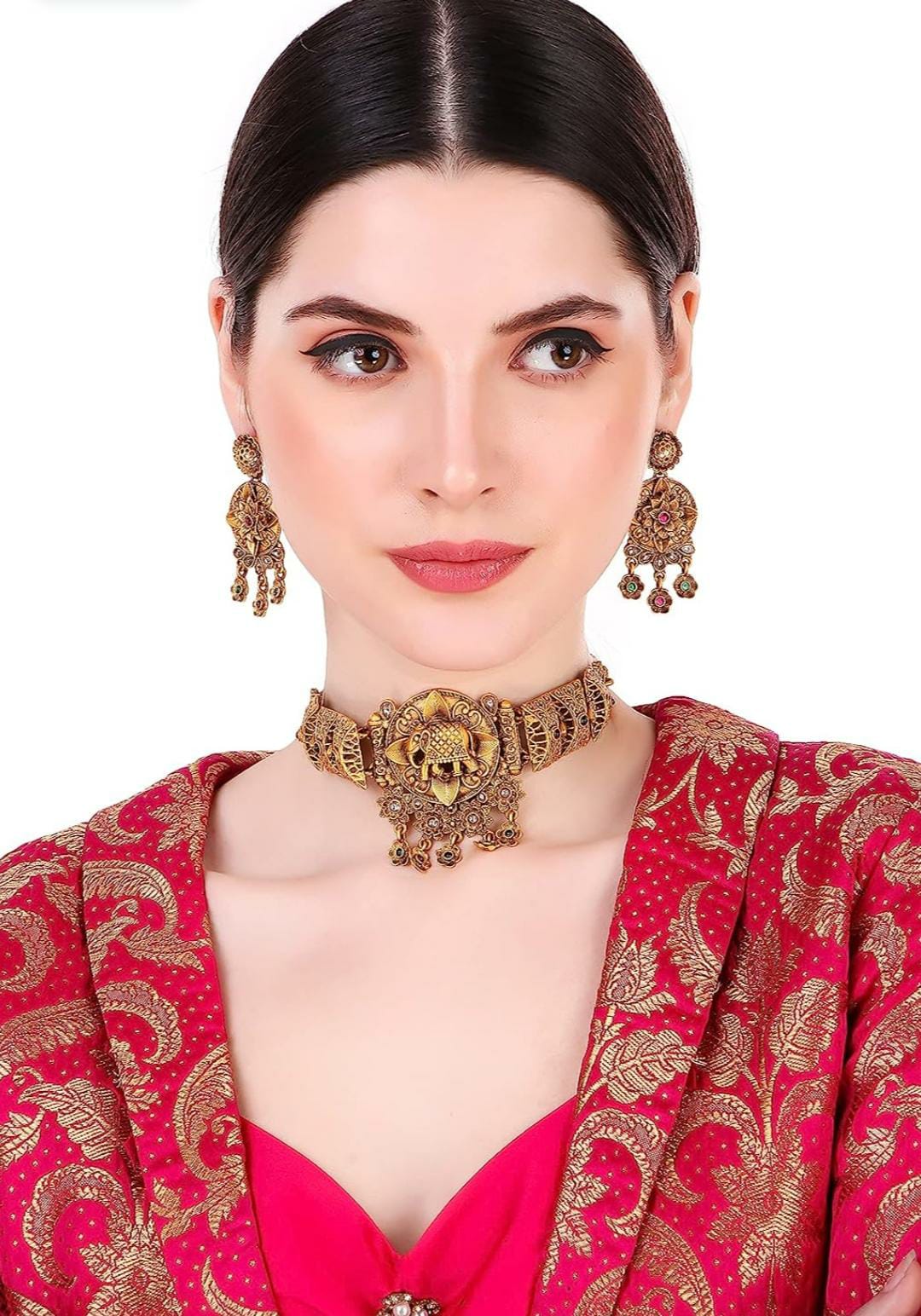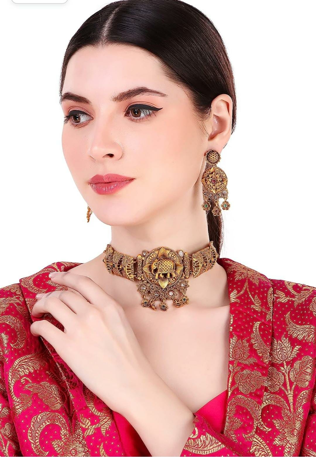 Antique Matt Gold Mutil South Indian Temple Theme jewellery