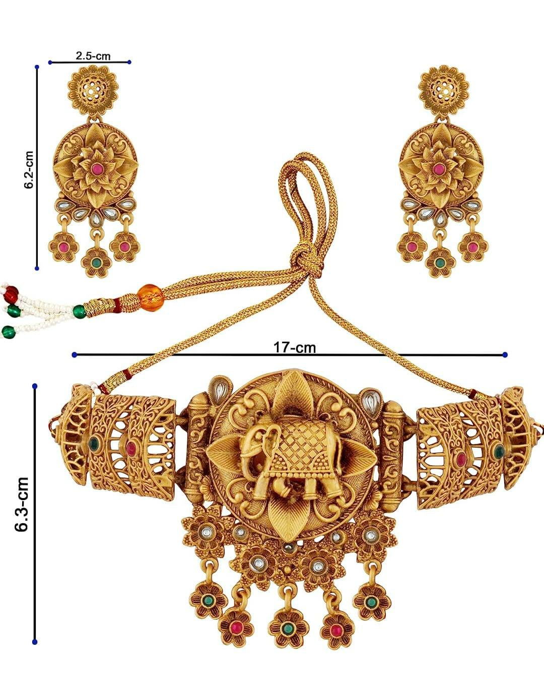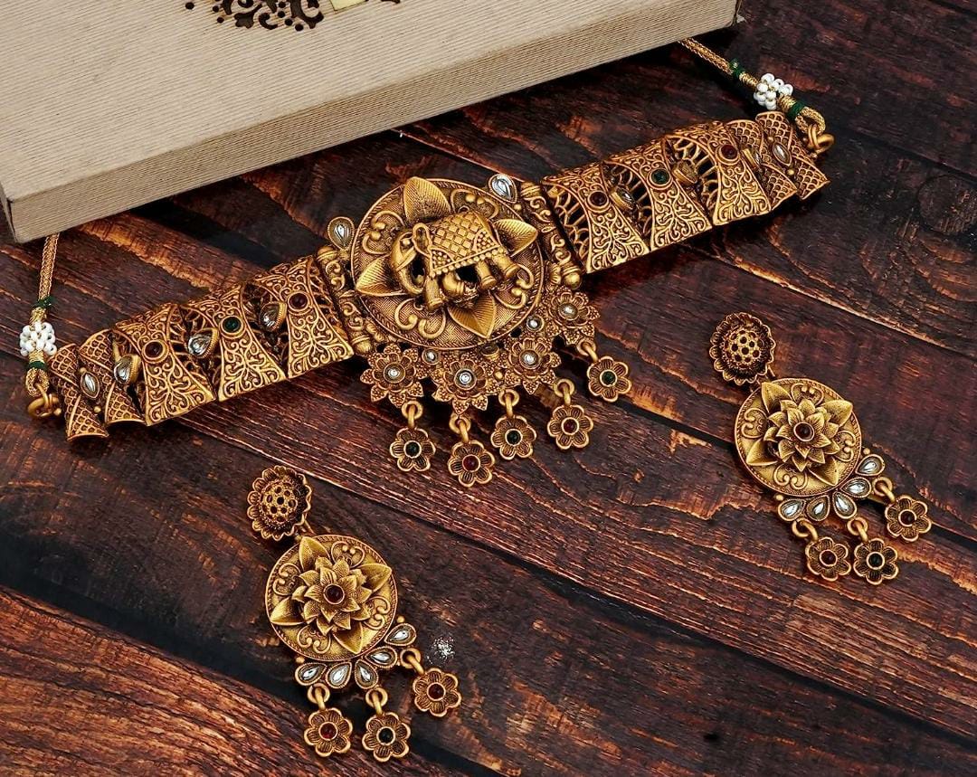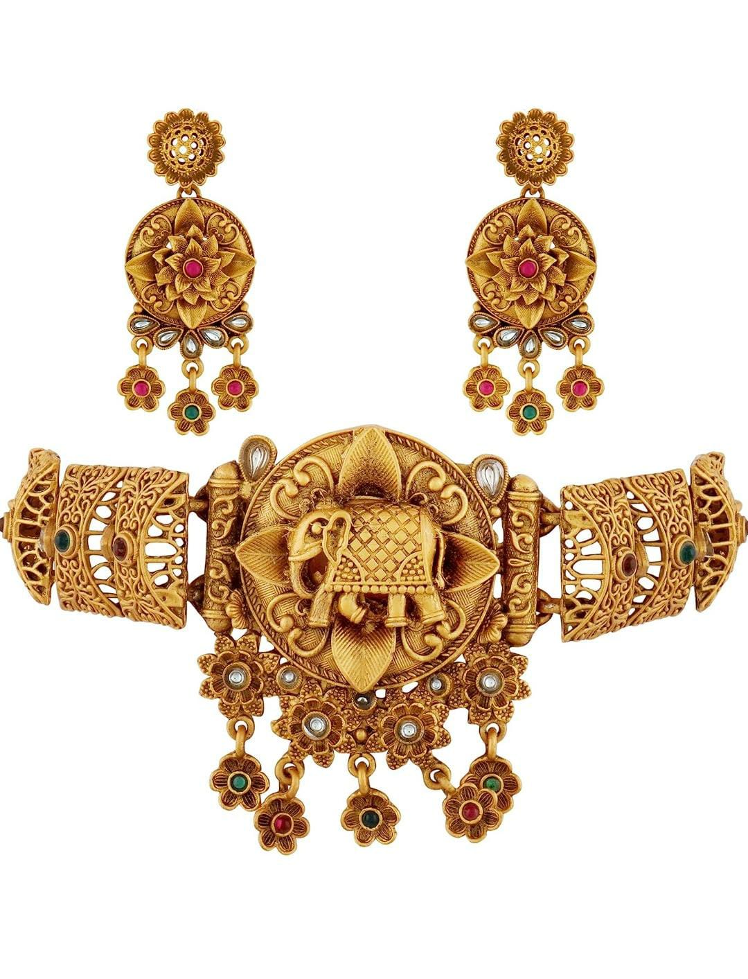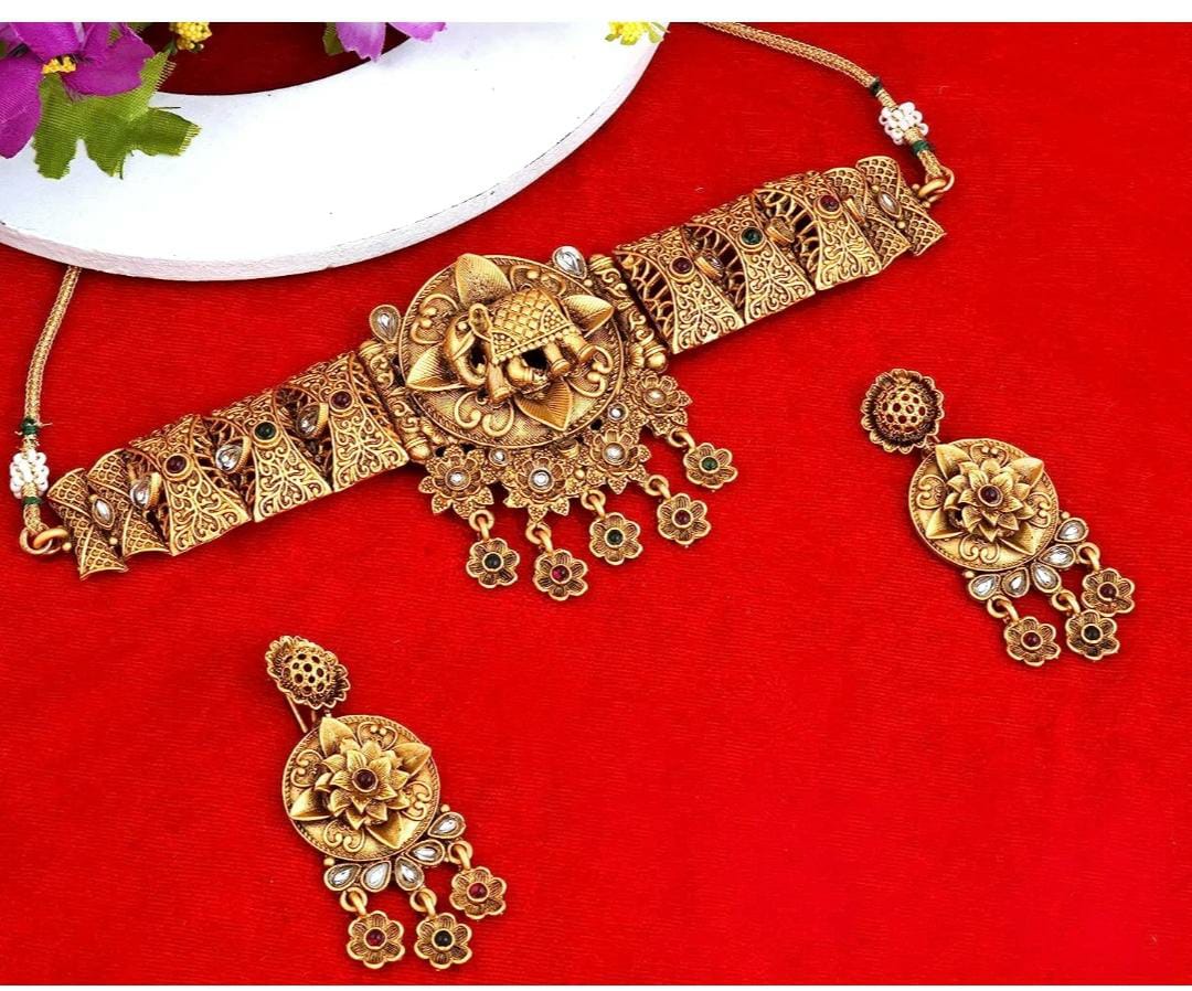 Antique Matt Gold Mutil South Indian Temple Theme jewellery