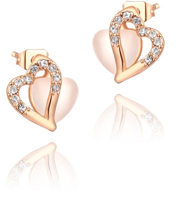 Rose Golden Plated Swarovski Stone on Heart Shape Stud Earrings in Berlin